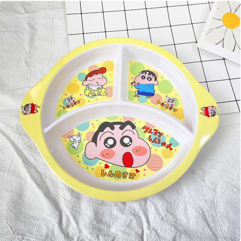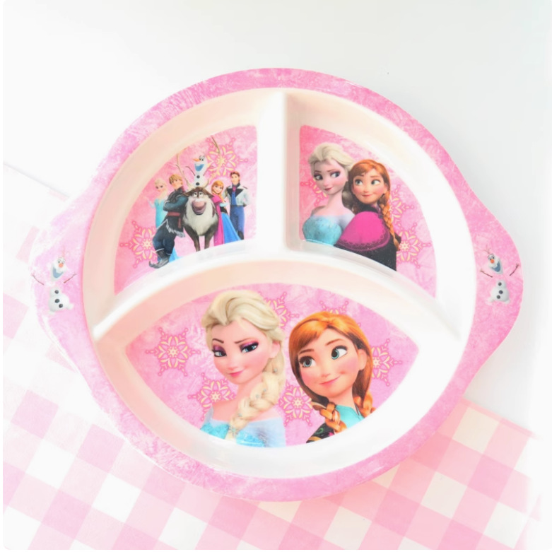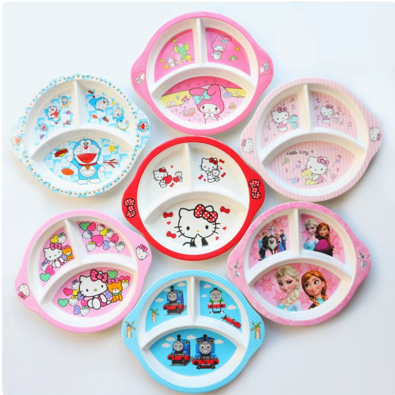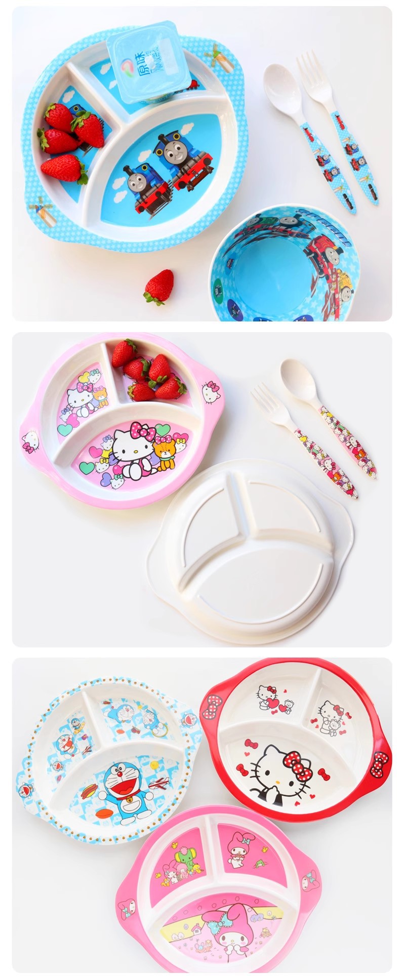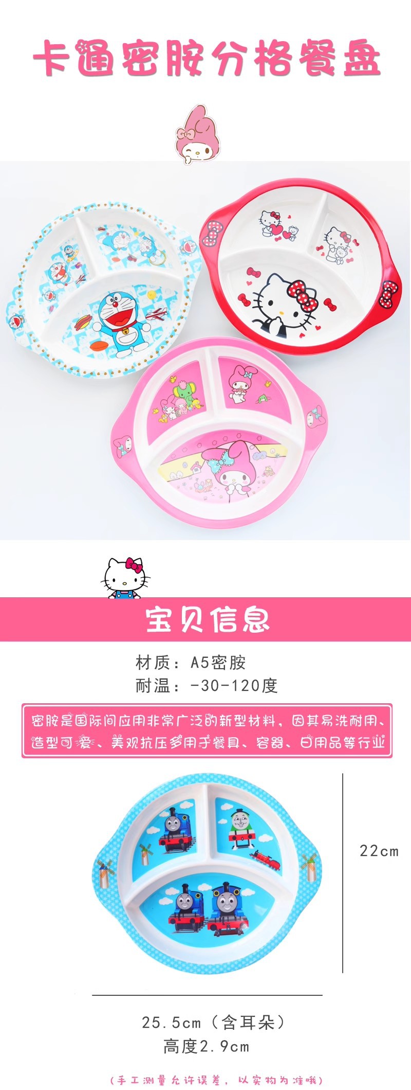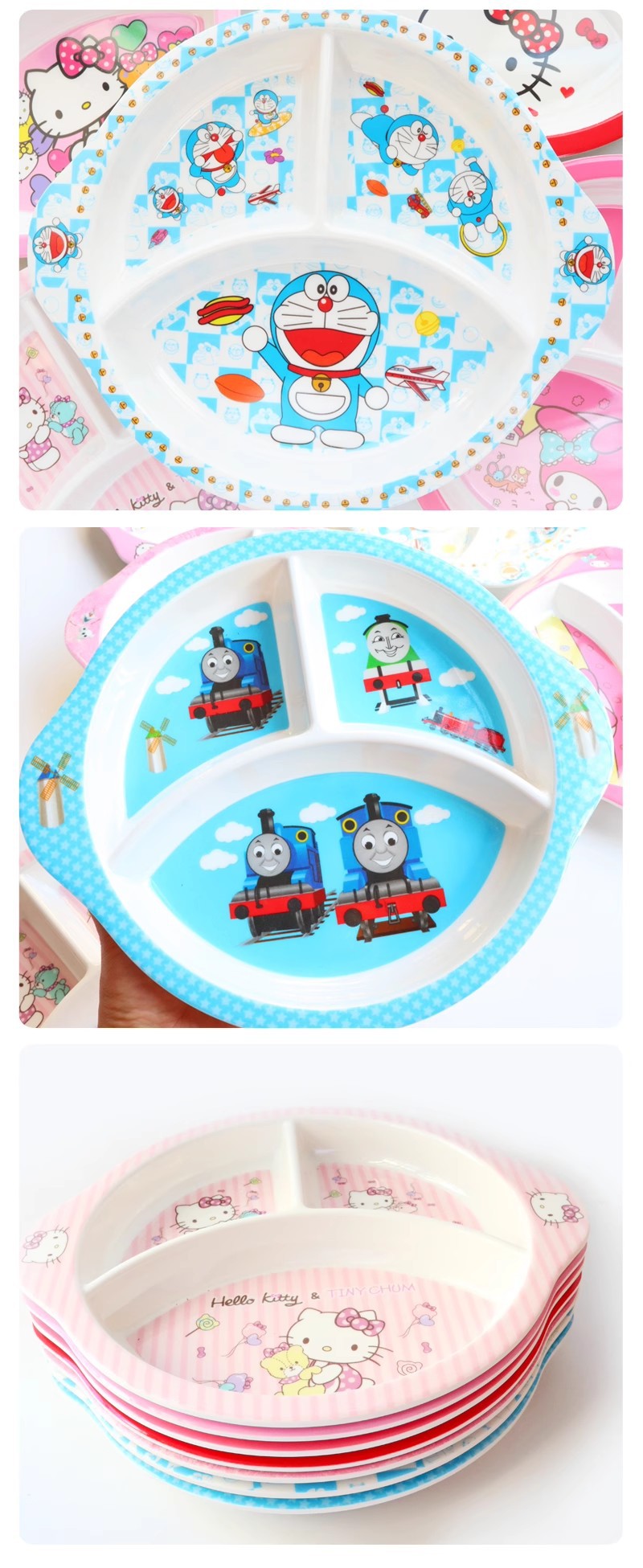 만화 어린이 분할 디너 플레이트 유치원 아기 디너 플레이트 낙하 방지 발화 방지 멜라민 라운드 3 칸 디너 플레이트