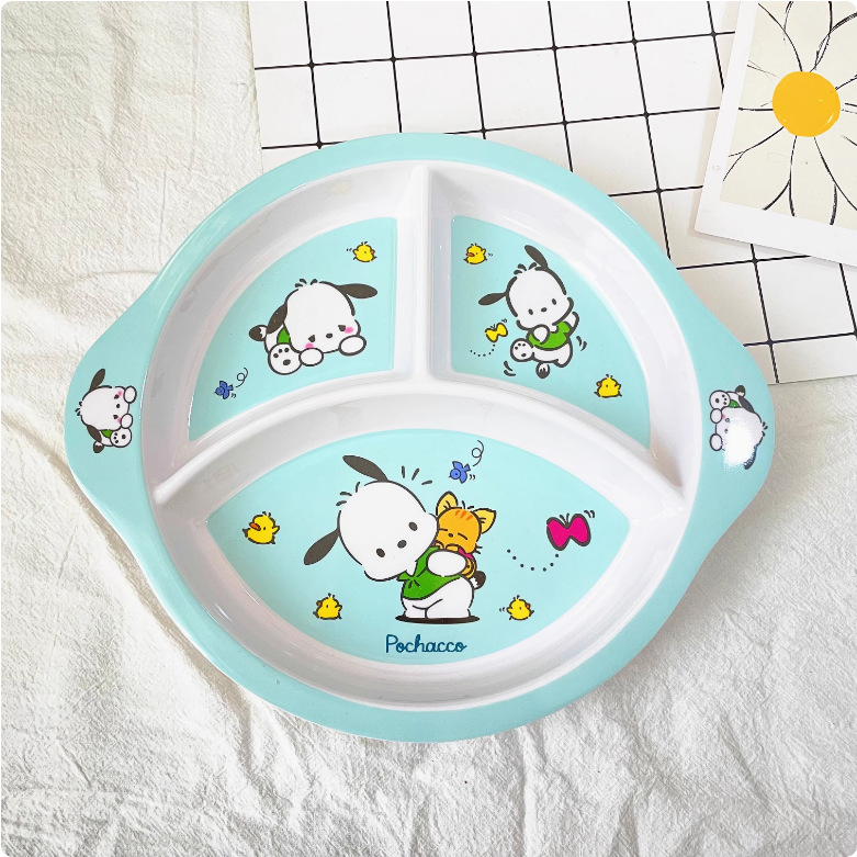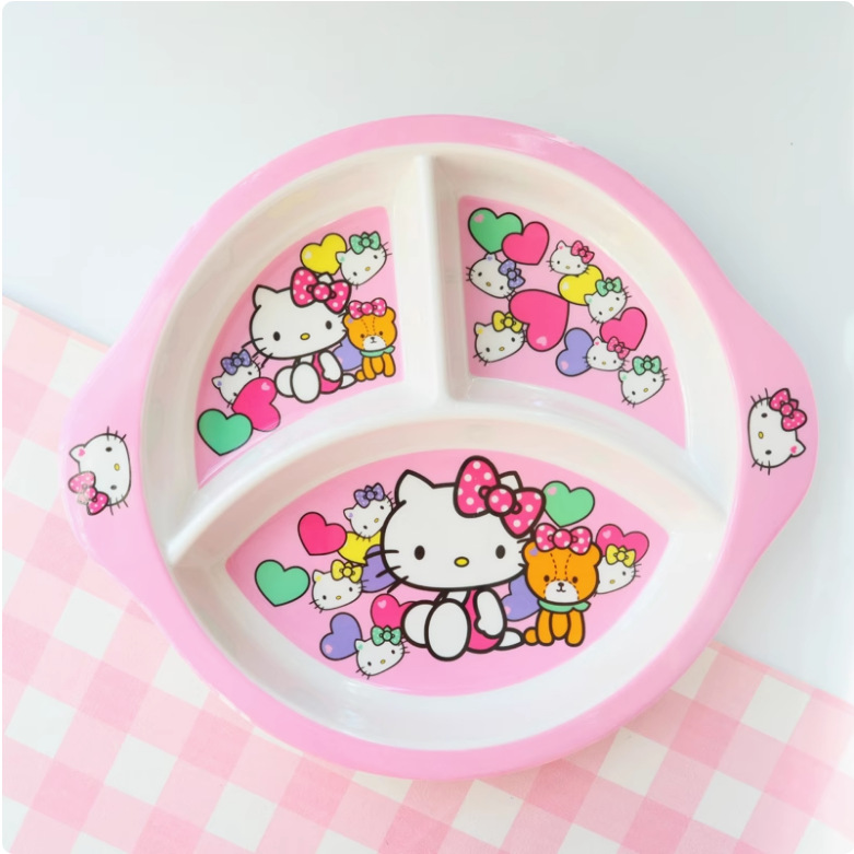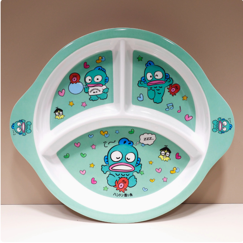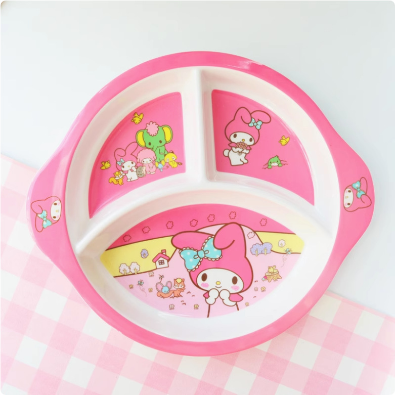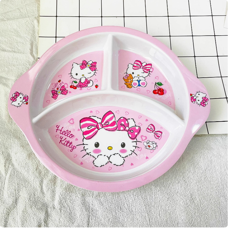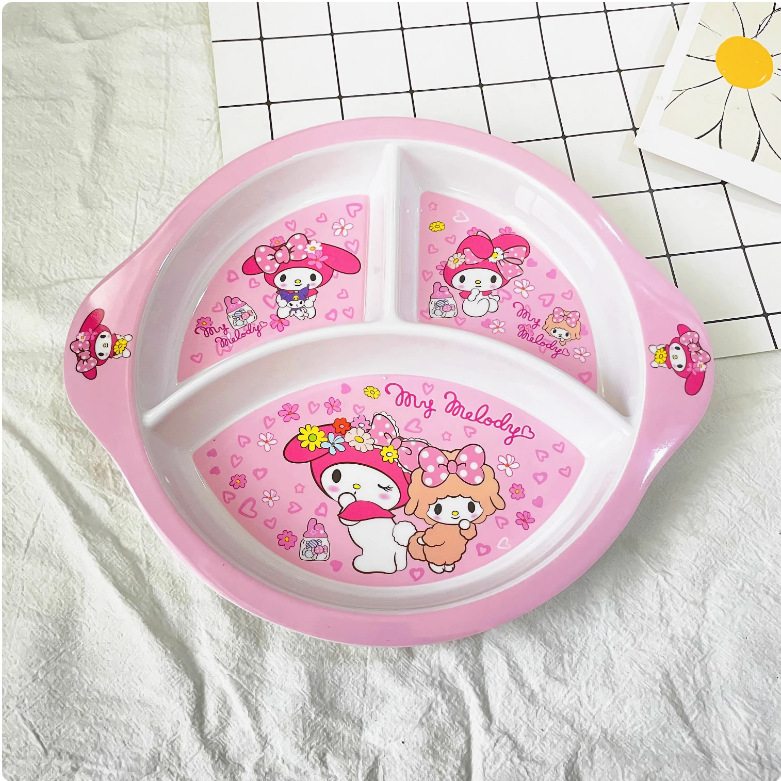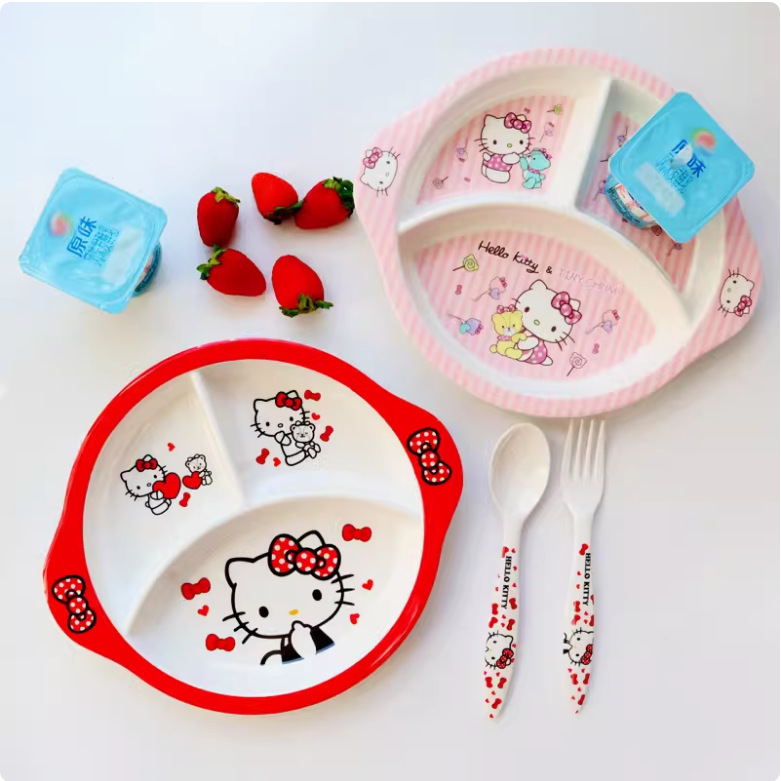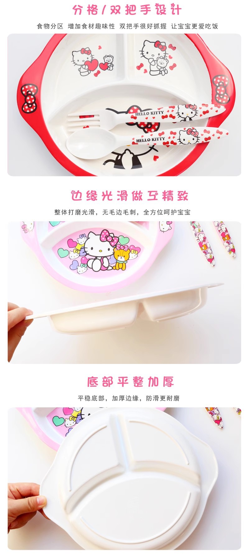 만화 어린이 분할 디너 플레이트 유치원 아기 디너 플레이트 낙하 방지 발화 방지 멜라민 라운드 3 칸 디너 플레이트