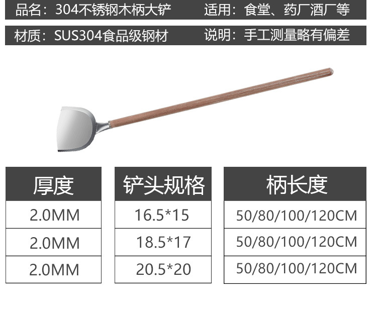304不锈钢大锅铲食堂酒店厨房炒菜大铲子厨具大号木长柄特大加厚