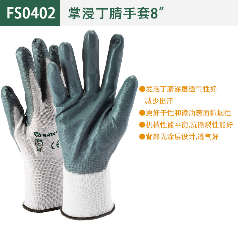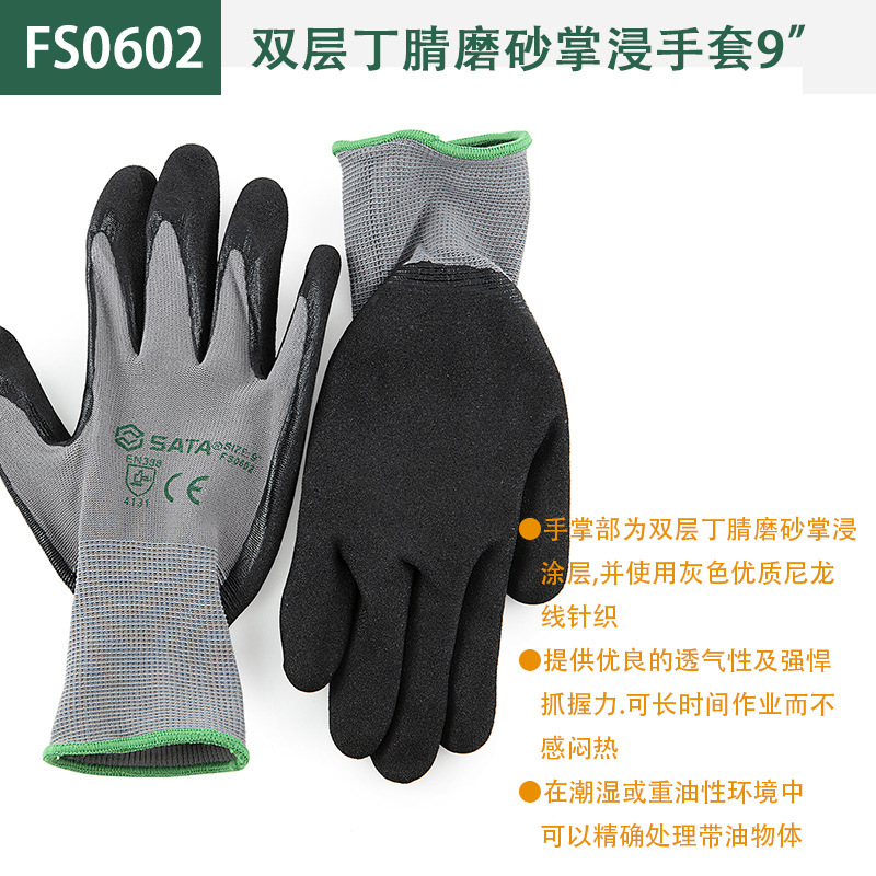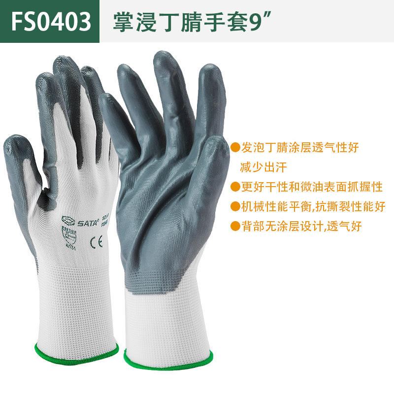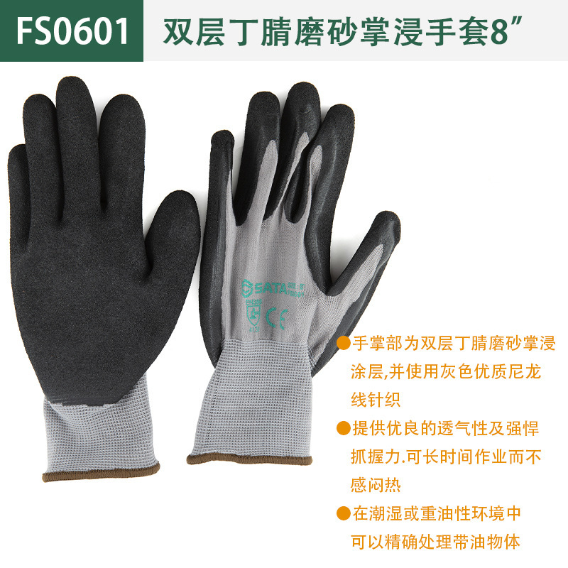 Shida (SATA) 노동 보호 장갑 내마모성 접착제 코팅 미끄럼 방지 벨트 접착제 작업 장갑 이중층 니트릴 장갑