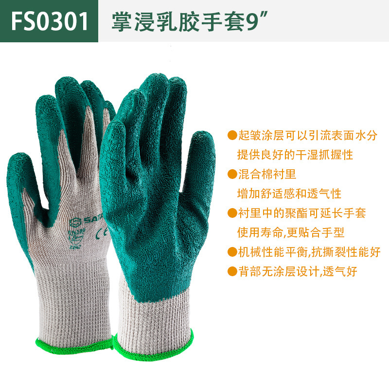 Shida (SATA) 노동 보호 장갑 내마모성 접착제 코팅 미끄럼 방지 벨트 접착제 작업 장갑 이중층 니트릴 장갑스토어 가기