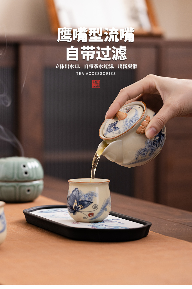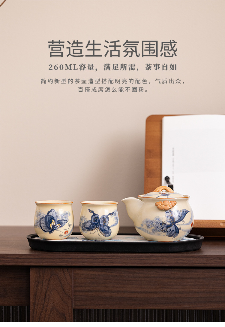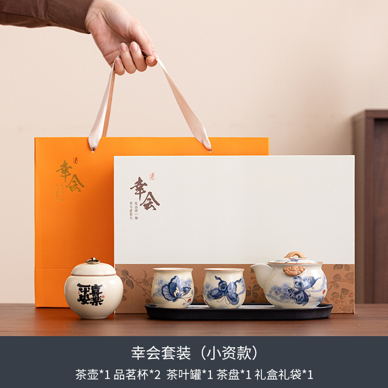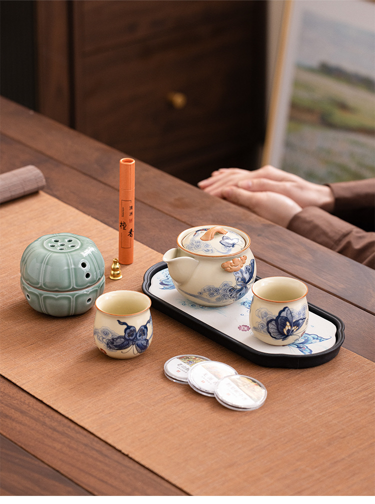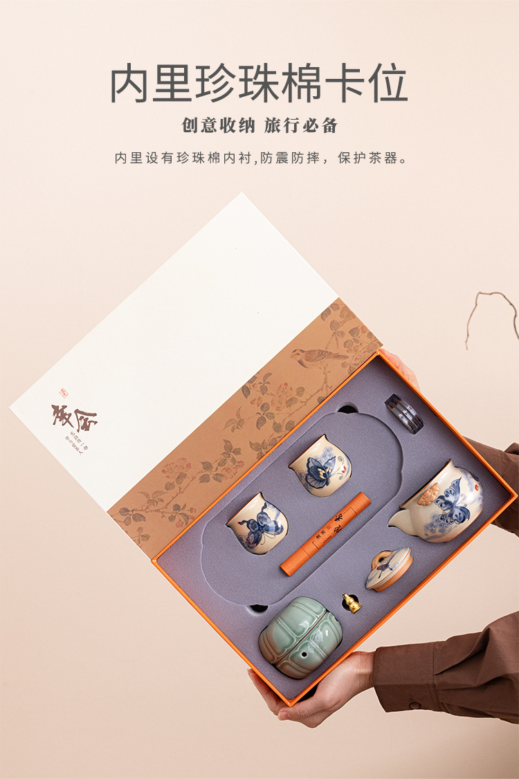 Ru Kiln Wenchuang 쿵푸 차 세트 세트 펜 시서와 시세론 다도 조합 선물 상자 동반 선물 상자스토어 가기