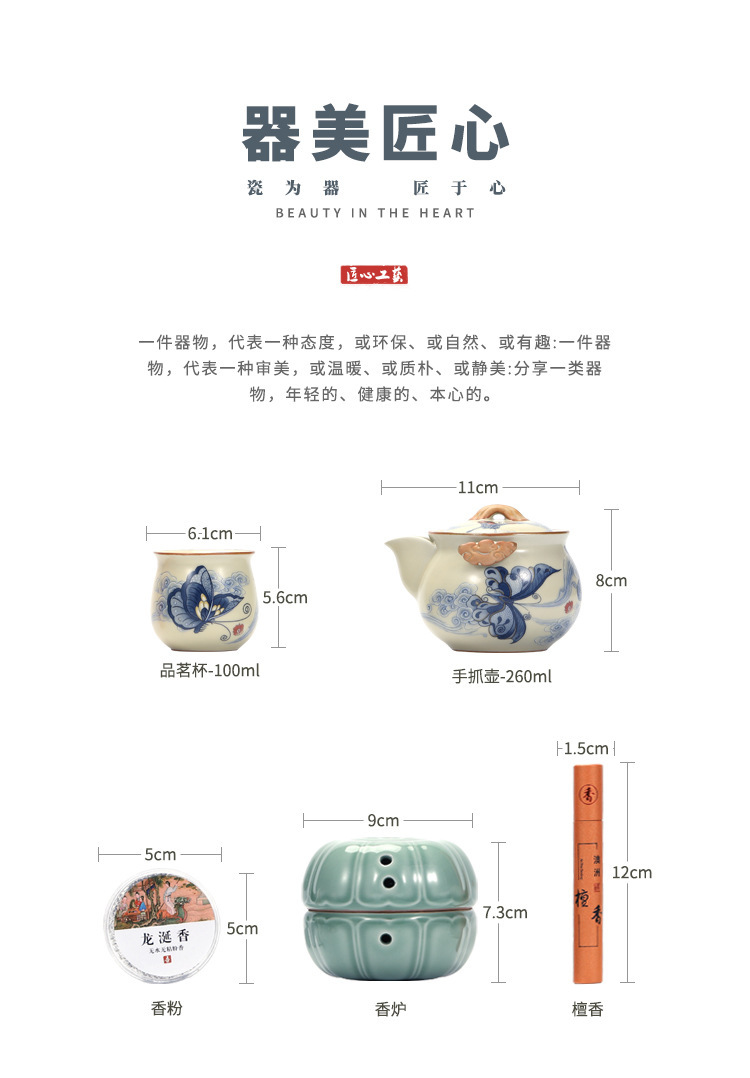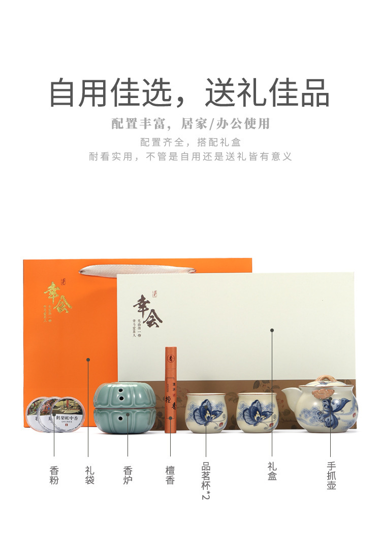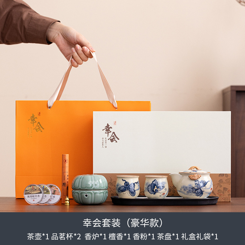 汝窑文创功夫茶具套装带盘香炉香道茶礼组合礼盒装伴手礼品