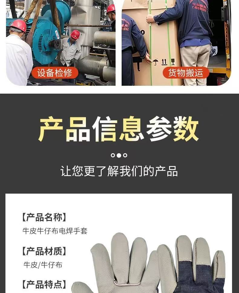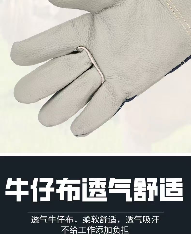 용접 장갑 소 가죽 고온 저항 방지 작업 내마모성 단열 용접기 용접 데님 내구성 보호 노동 보호스토어 가기