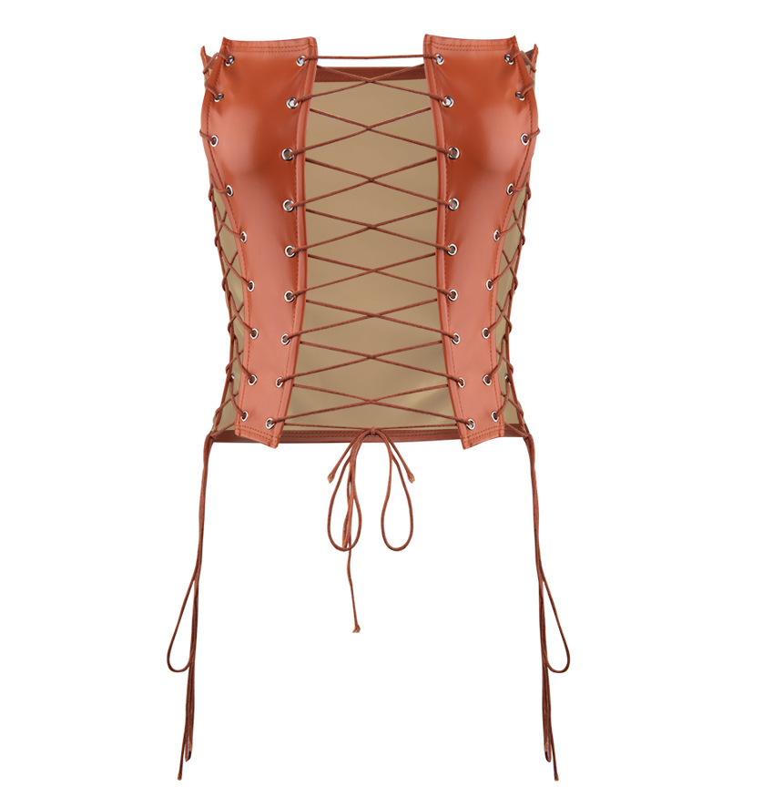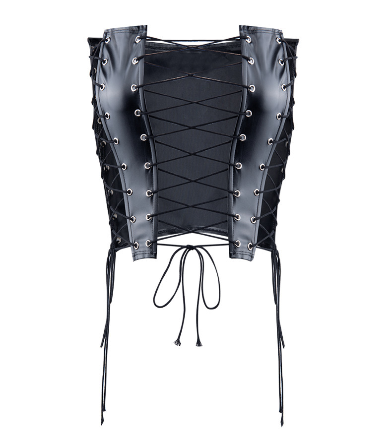 봄 새로운 유럽과 미국의 여성 나이트 클럽 섹시 할로우 조끼 스트랩리스 스트랩 피쉬 뼈 모방 가죽 허리 탑