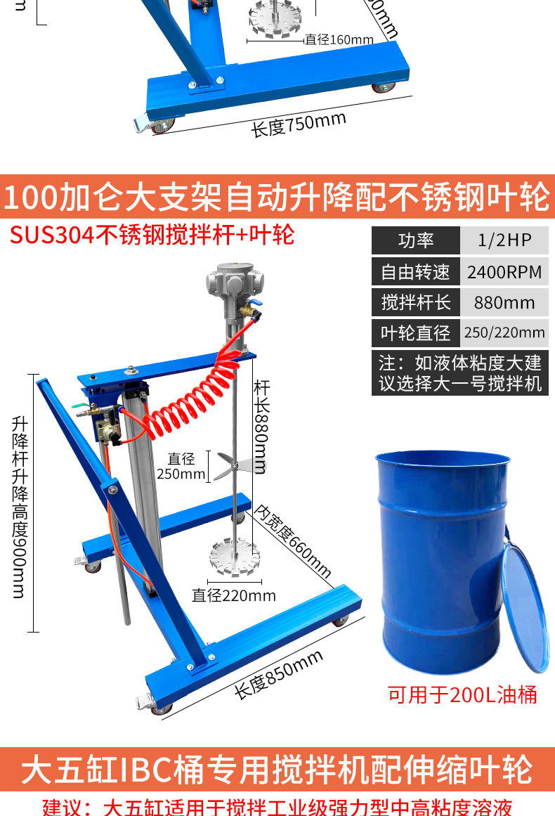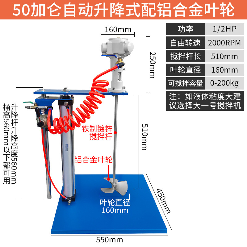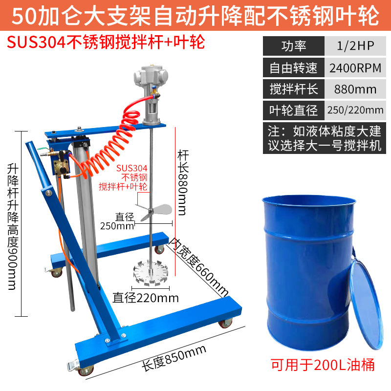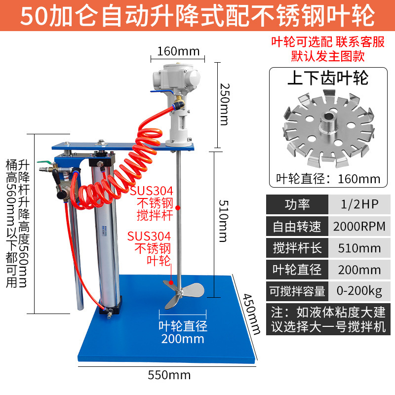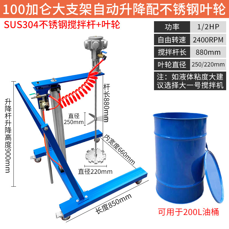공압 믹서 5 기통 자동 리프팅 수평 플레이트 클립-오일 배럴 톤 배럴 접착제 페인트 고속 믹서 폭발 방지