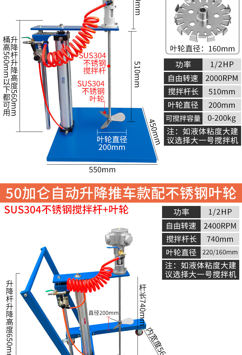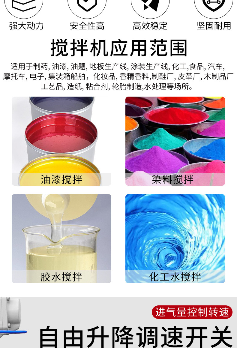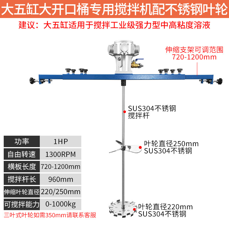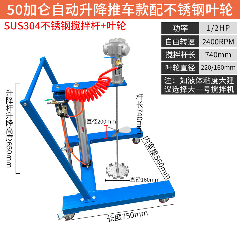 공압 믹서 5 기통 자동 리프팅 수평 플레이트 클립-오일 배럴 톤 배럴 접착제 페인트 고속 믹서 폭발 방지