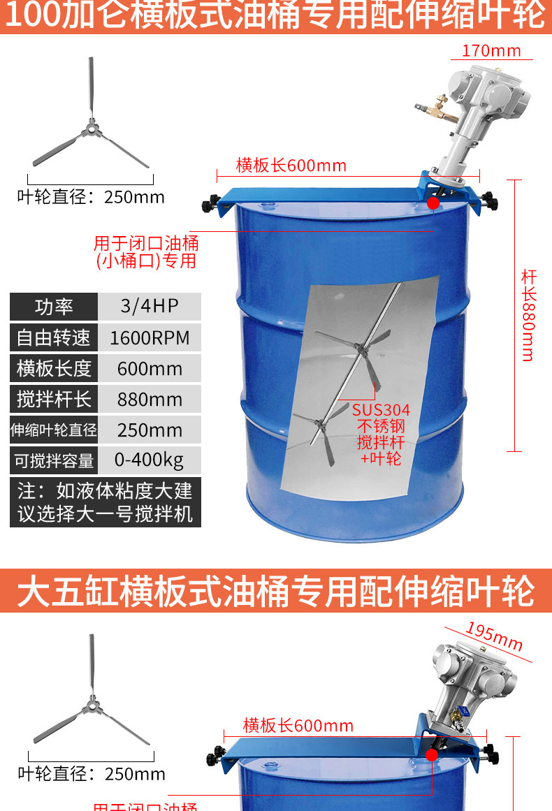 • 고정 대형 임펠러가 장착된 250개의 대형 개방형 배럴 당김 실린더용 특수