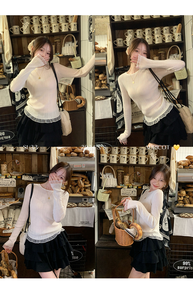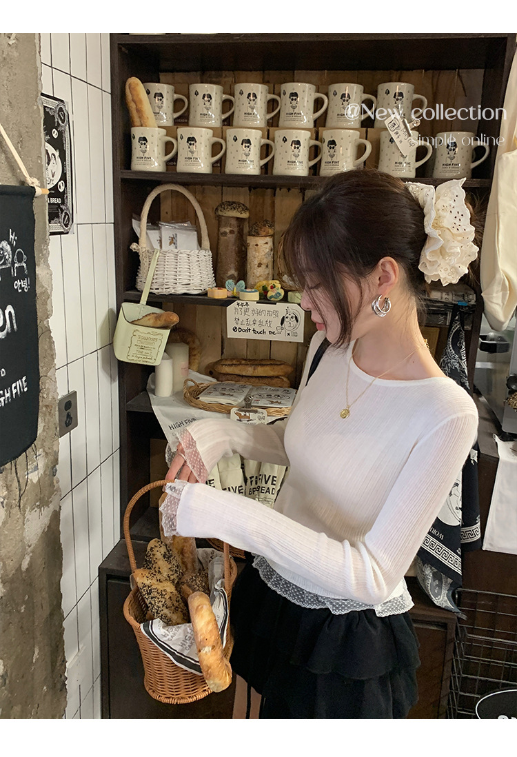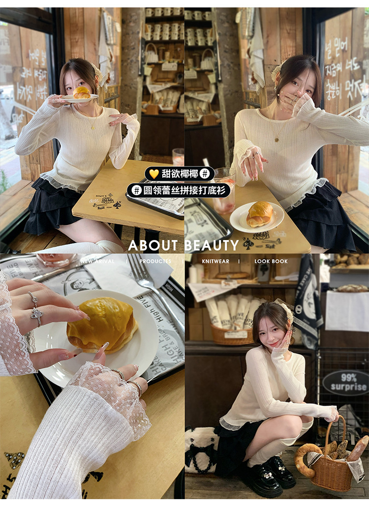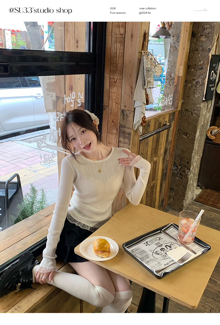 새로운베이스 니트웨어 여성용 레이스베이스 셔츠 고급 스웨터 화이트 탑 솔리드 컬러 한국 스타일스토어 가기