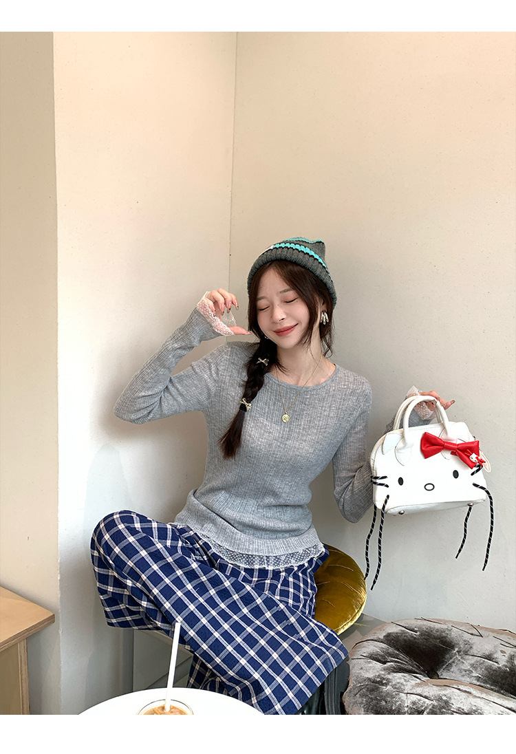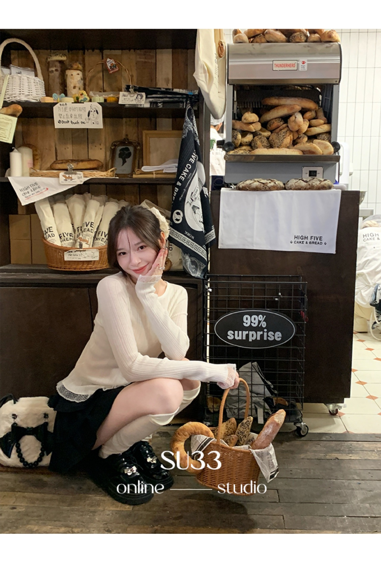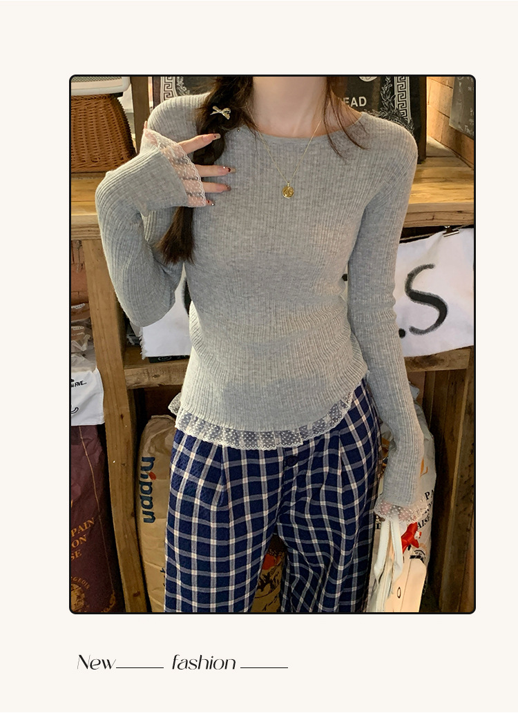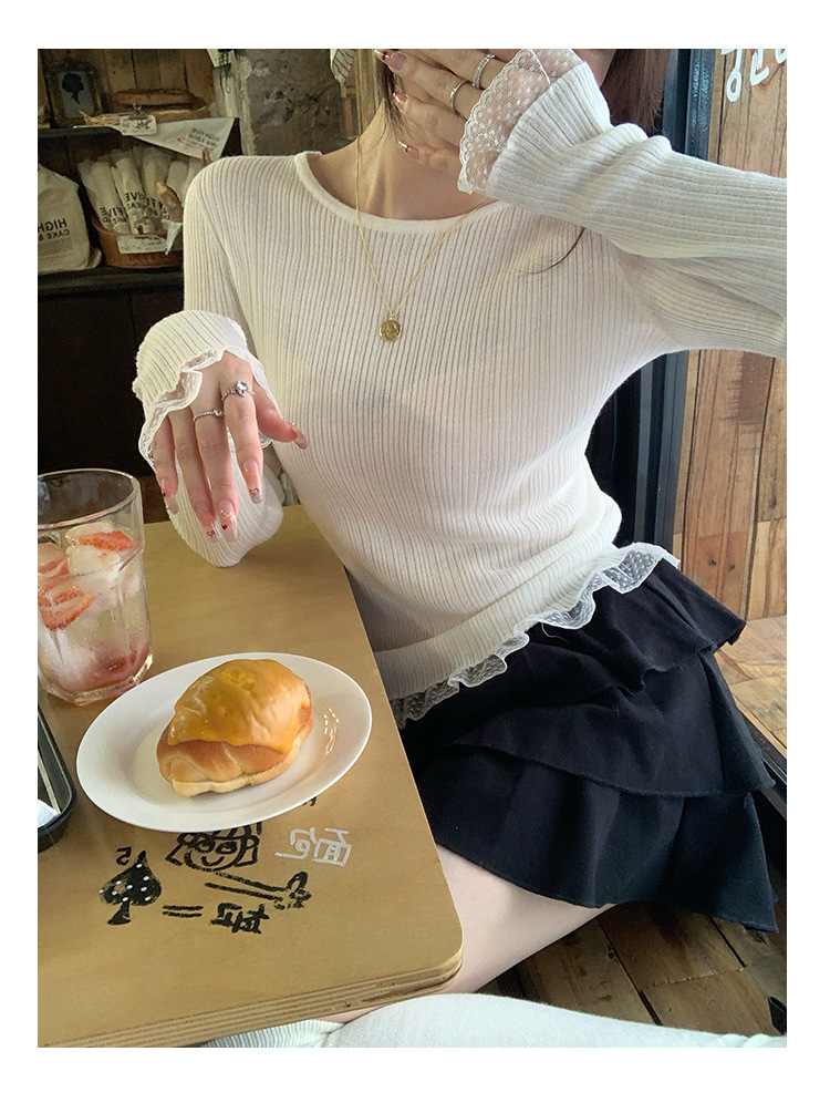 새로운베이스 니트웨어 여성용 레이스베이스 셔츠 고급 스웨터 화이트 탑 솔리드 컬러 한국 스타일스토어 가기