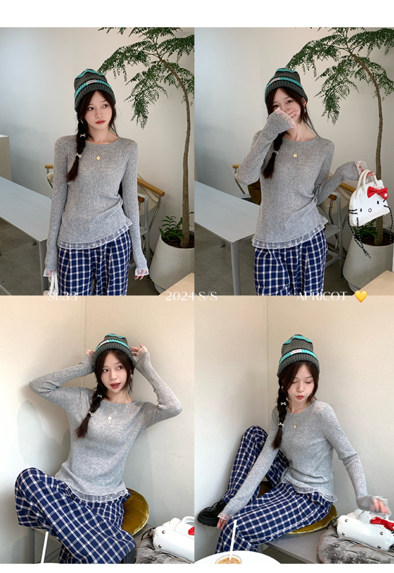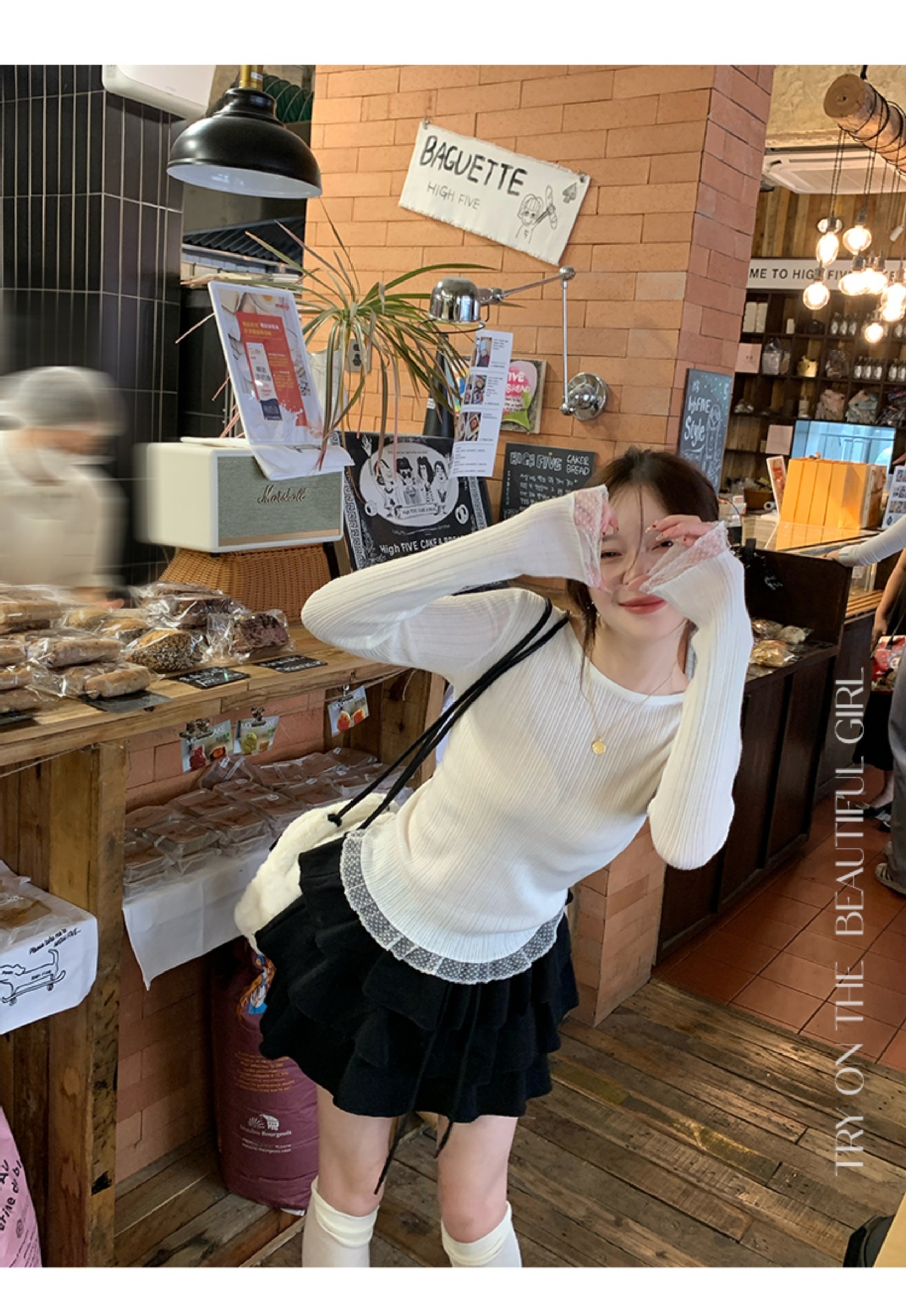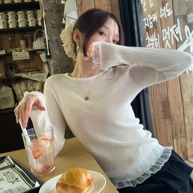 새로운베이스 니트웨어 여성용 레이스베이스 셔츠 고급 스웨터 화이트 탑 솔리드 컬러 한국 스타일