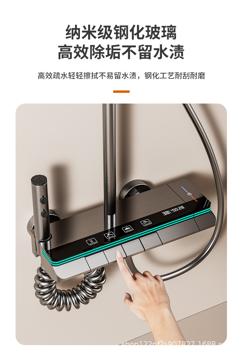 건메탈 샤워기 세트, 올코퍼 욕실 온도조절 가압식 욕실 냉온 샤워헤드, LED 조명스토어 가기