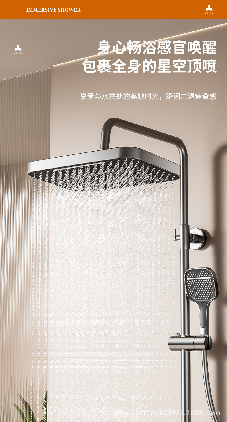 건메탈 샤워기 세트, 올코퍼 욕실 온도조절 가압식 욕실 냉온 샤워헤드, LED 조명
