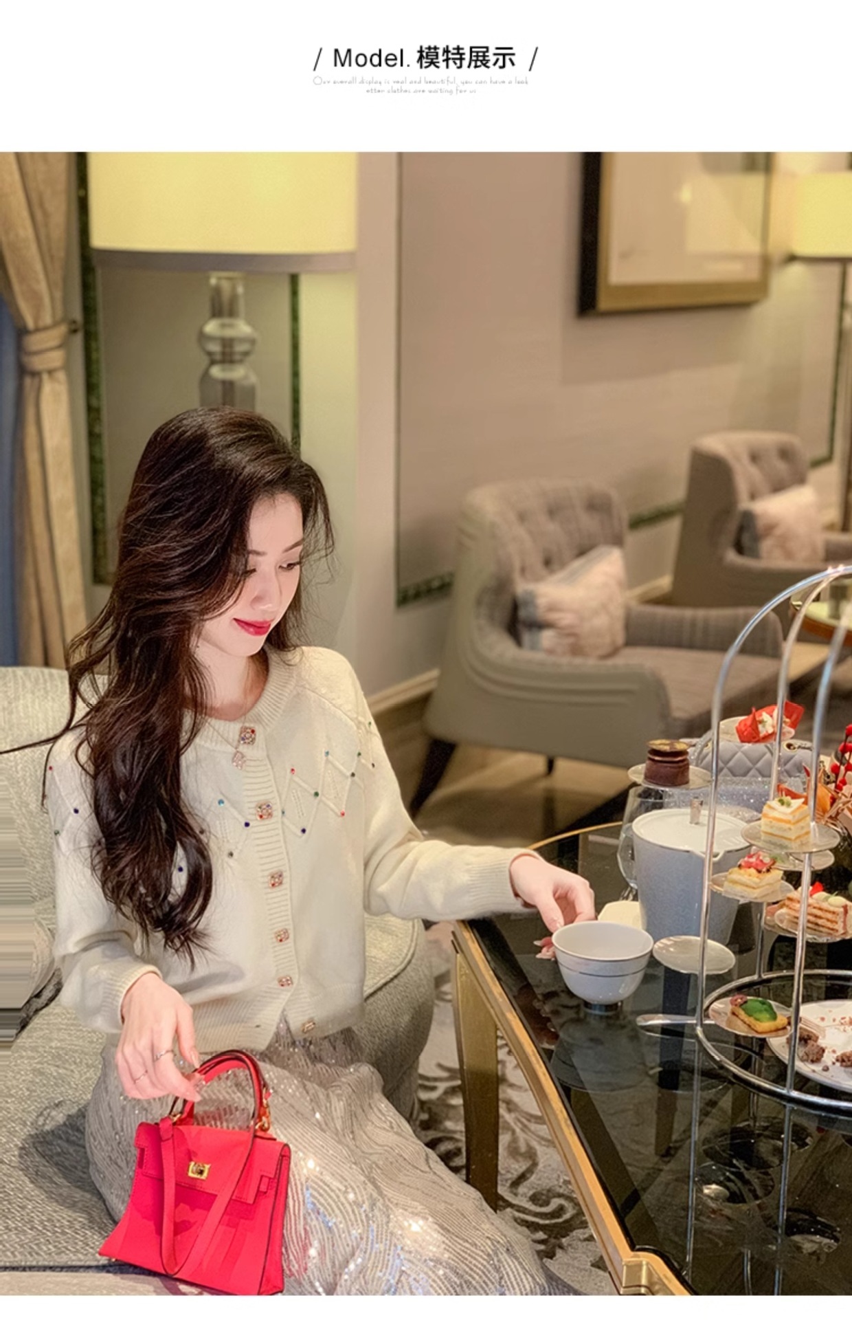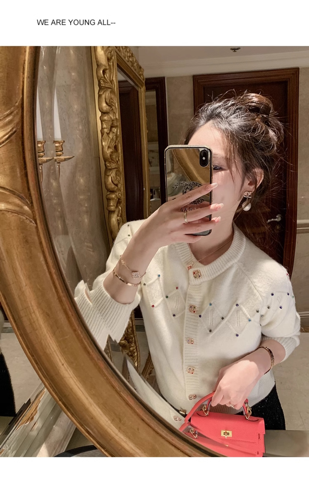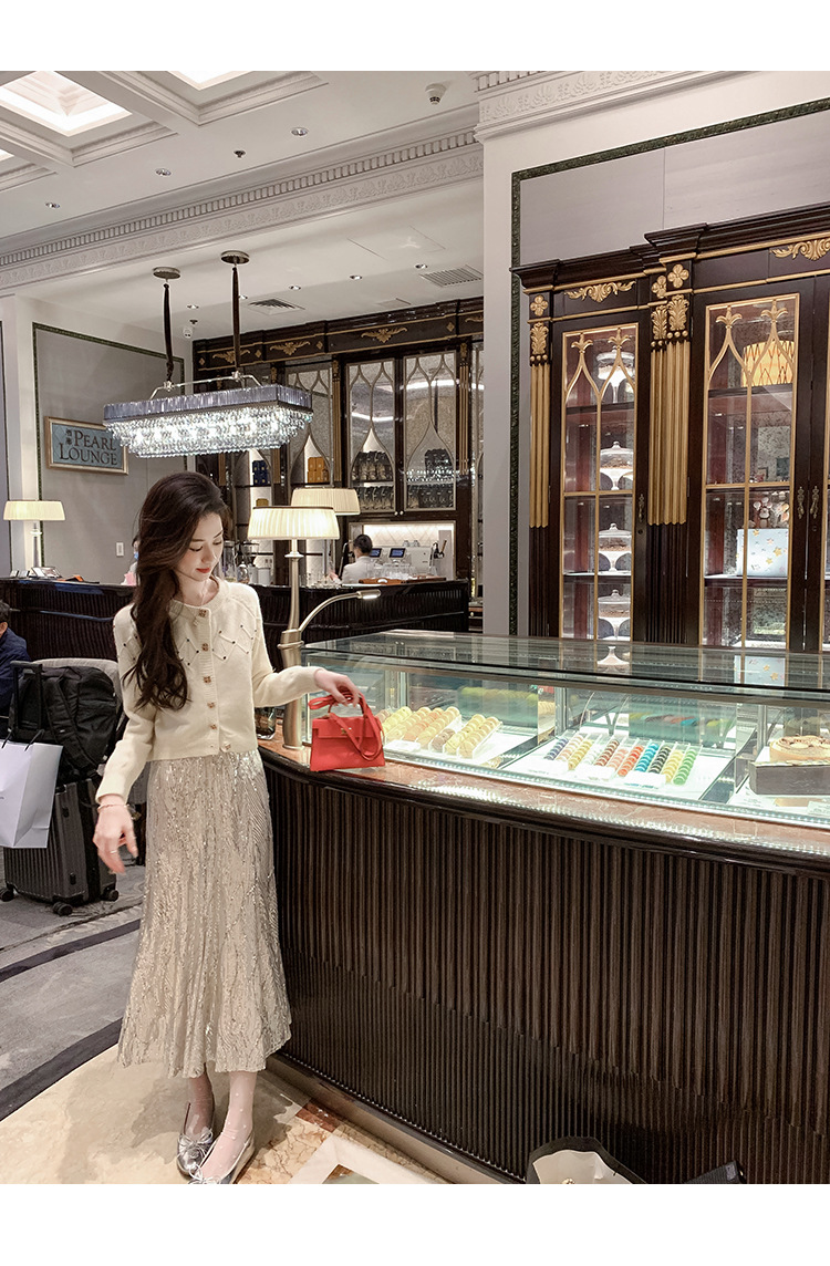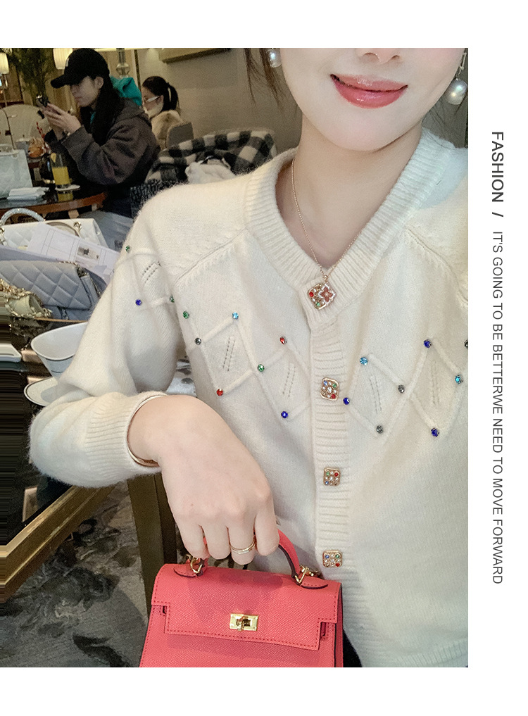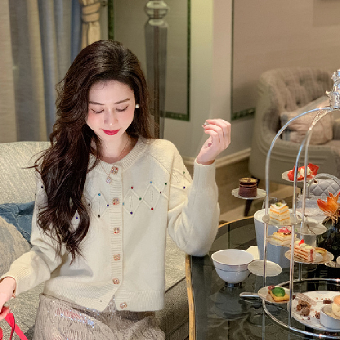 화이트 샤넬 크루 넥 스웨터 카디건 여성의 2024 가을과 겨울 새로운 독특한 세련된 디자인 감각 긴 소매 탑스토어 가기