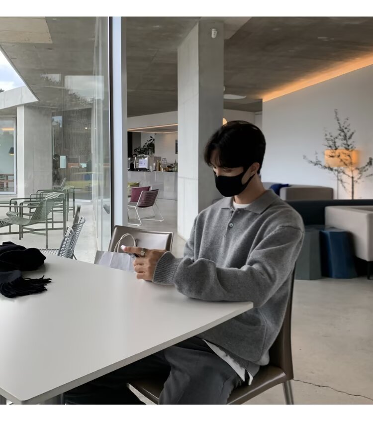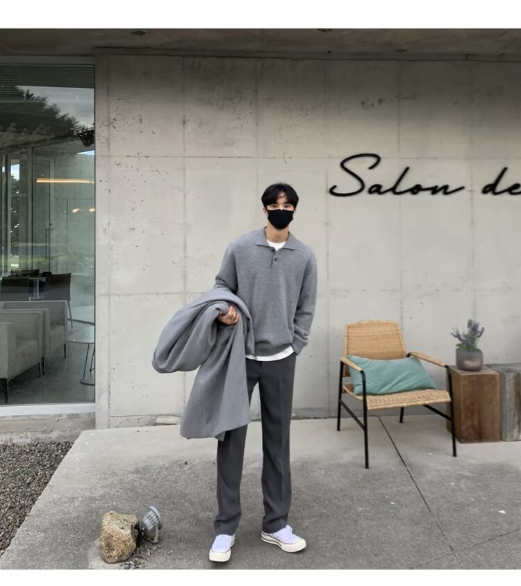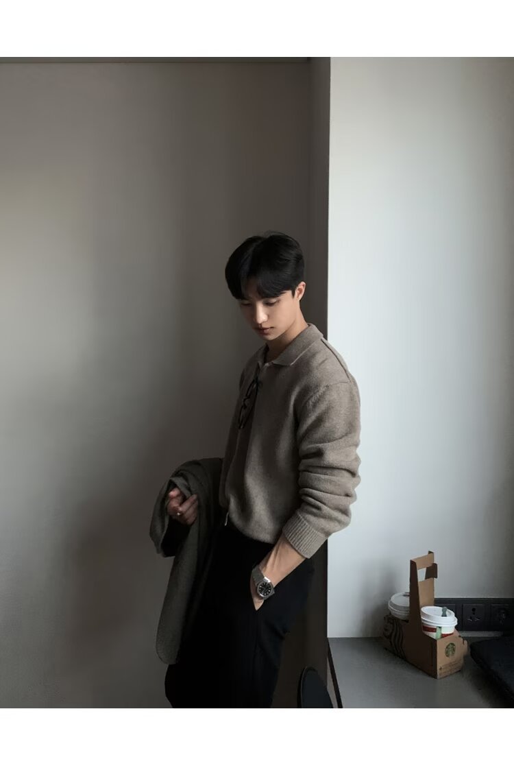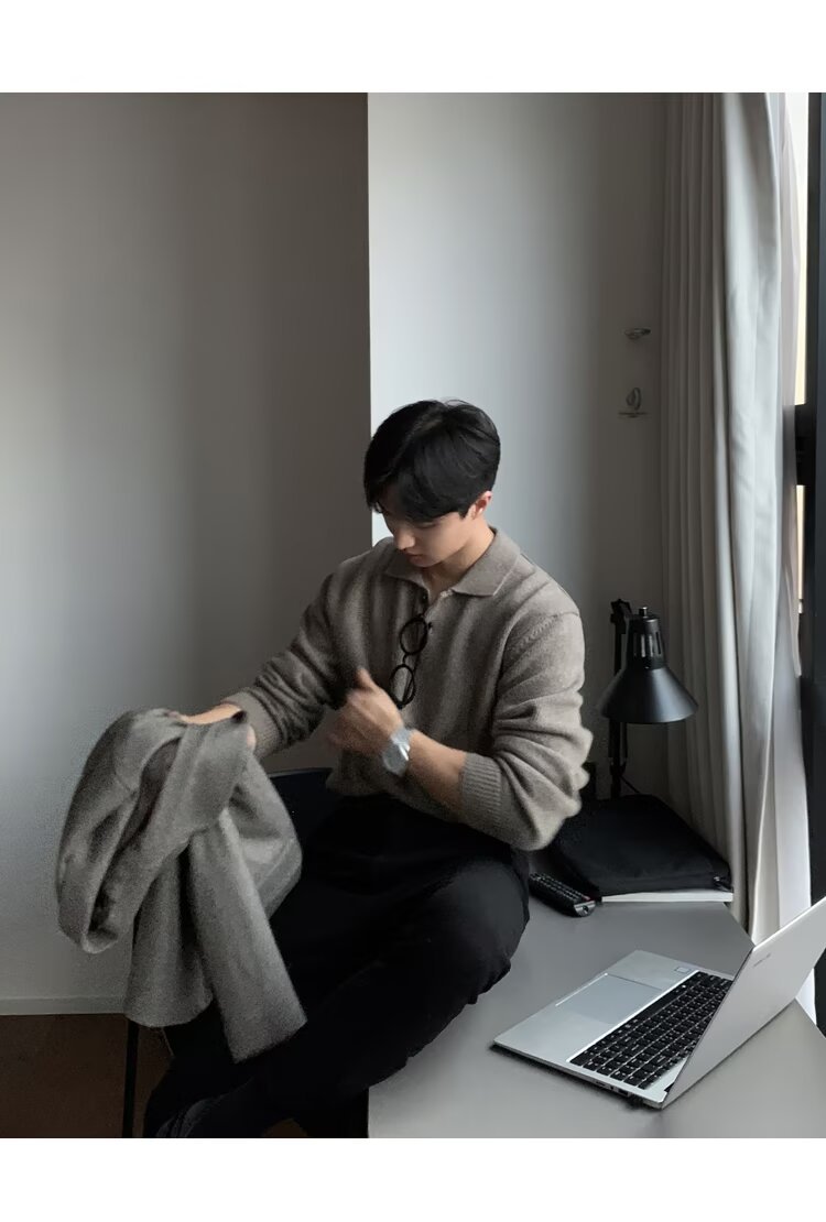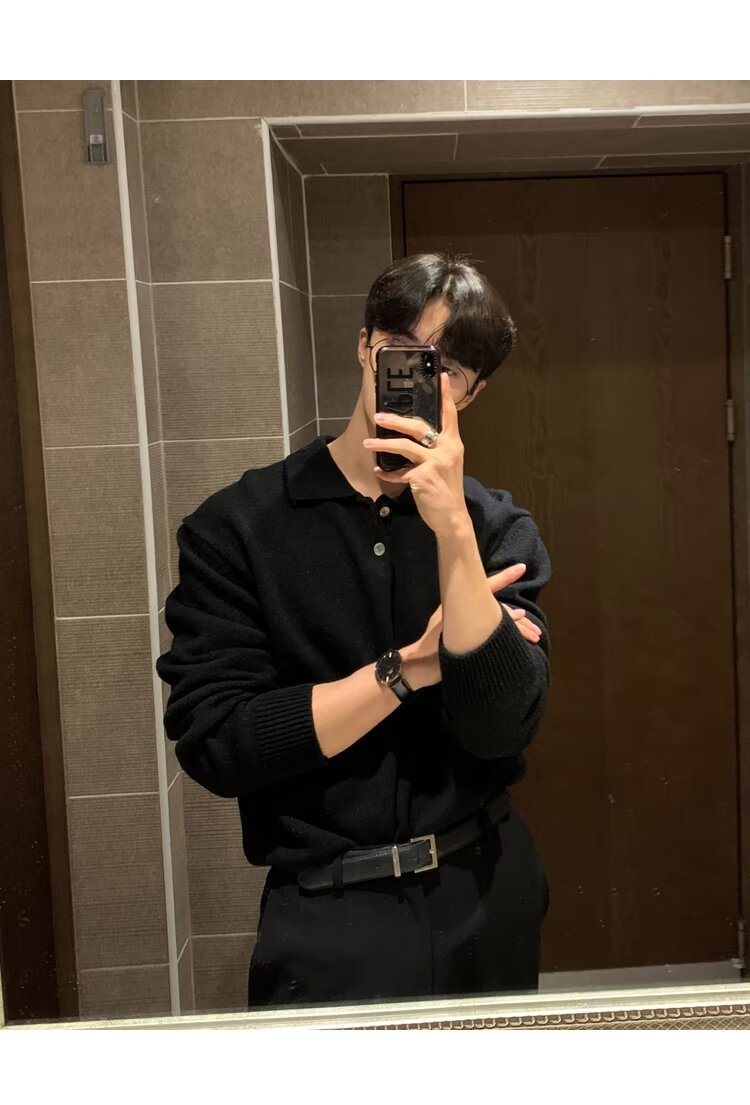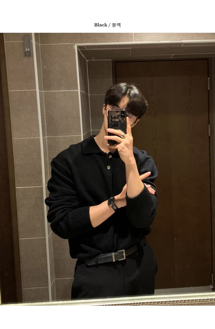 트렌디 한 새로운 동대문 한국 남성용 레이저 스웨터 남성 디자이너 폴로 칼라 피부 친화적 인 느슨한 니트 스웨터