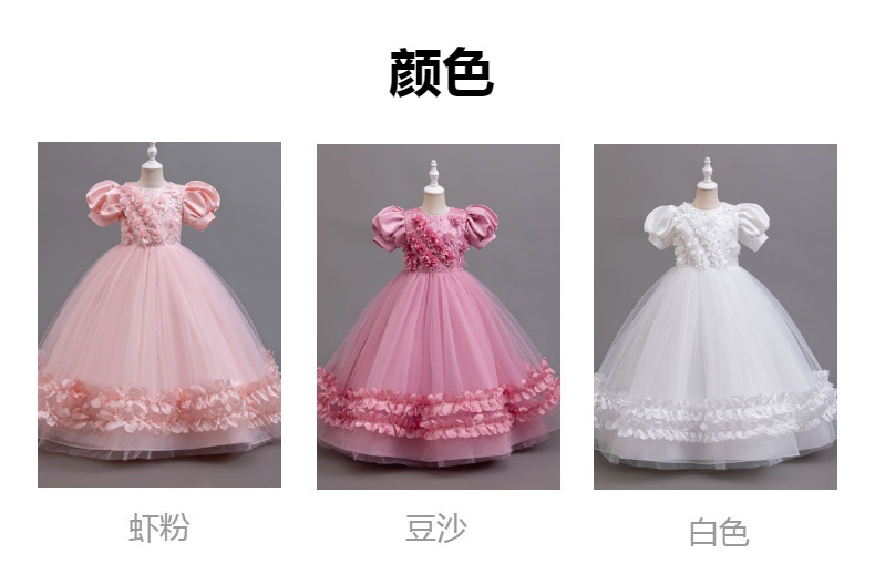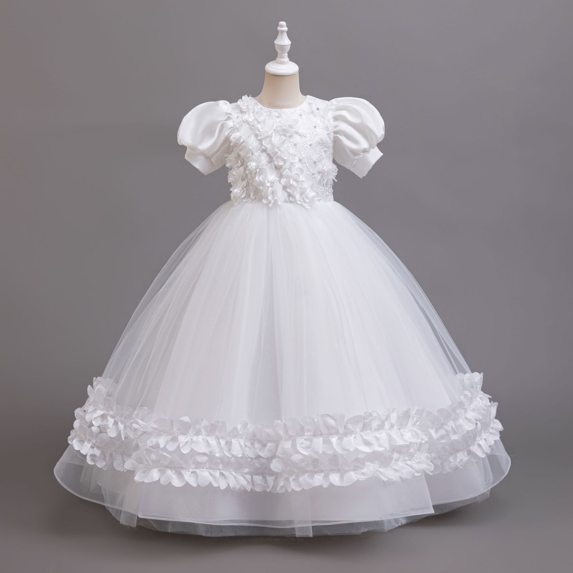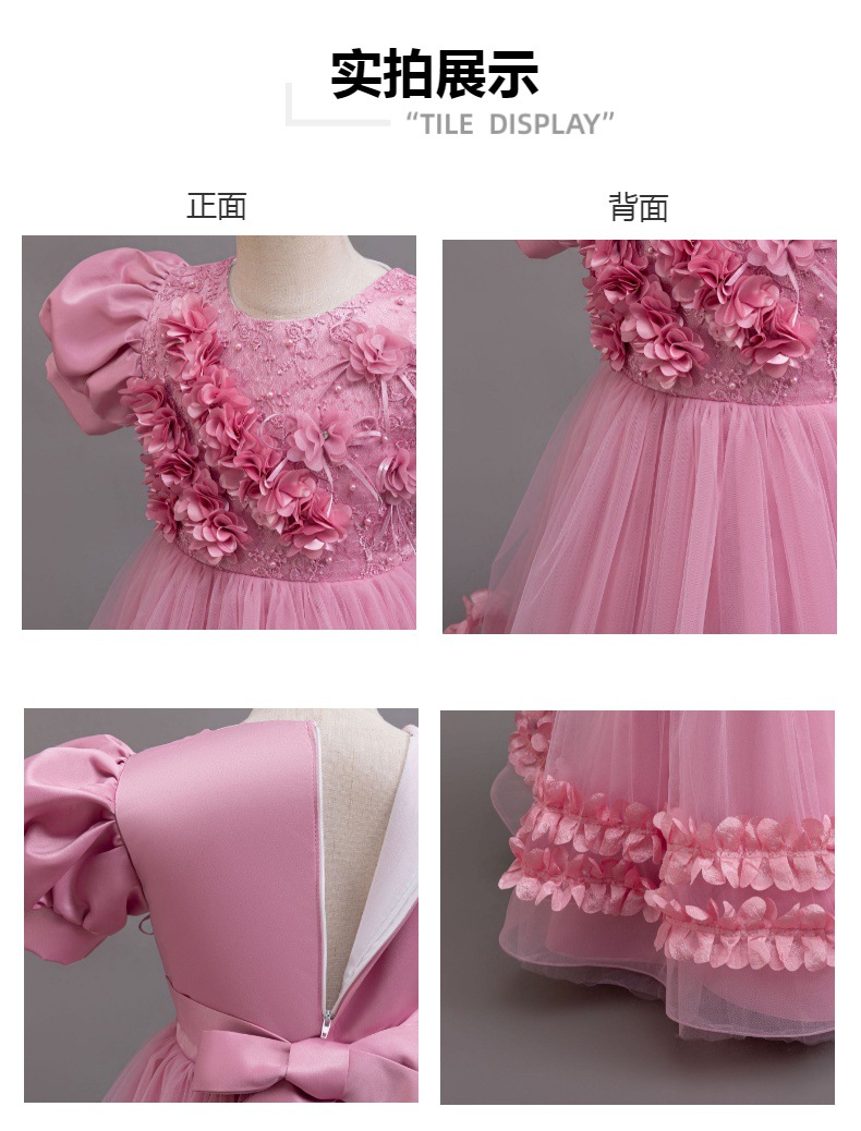 국경 간 소녀 원피스 버블 슬리브 긴 원피스 공주 원피스 어린이 원피스 핑크 플라워 투투 원피스
