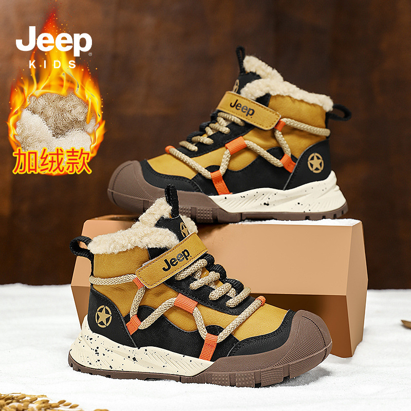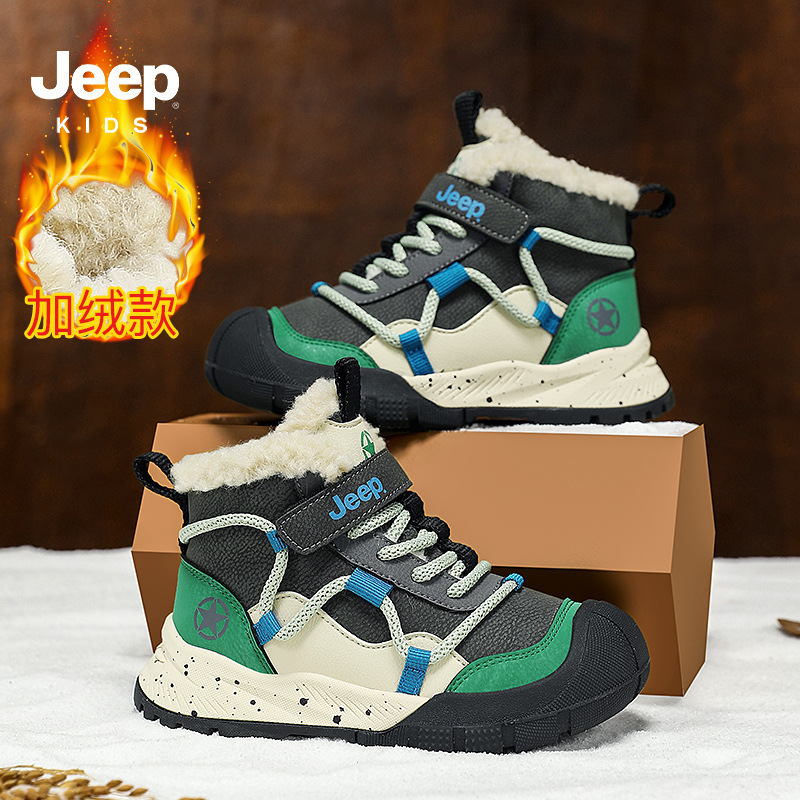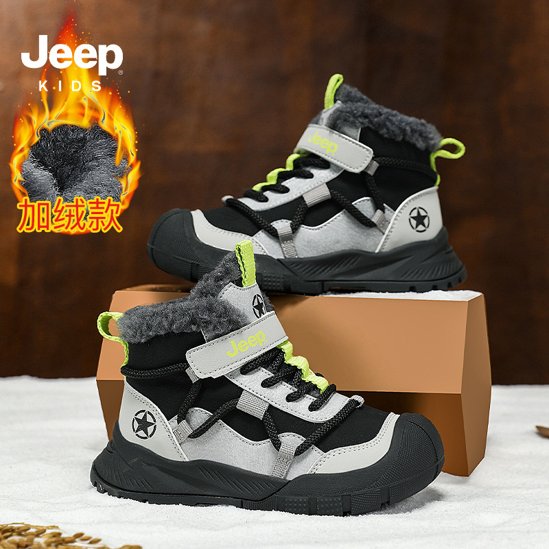 지프 어린이 면화 2024 겨울 새 기모 따뜻한 면화 신발 편안한 미끄럼 방지 어린이 운동화 가죽 방수스토어 가기