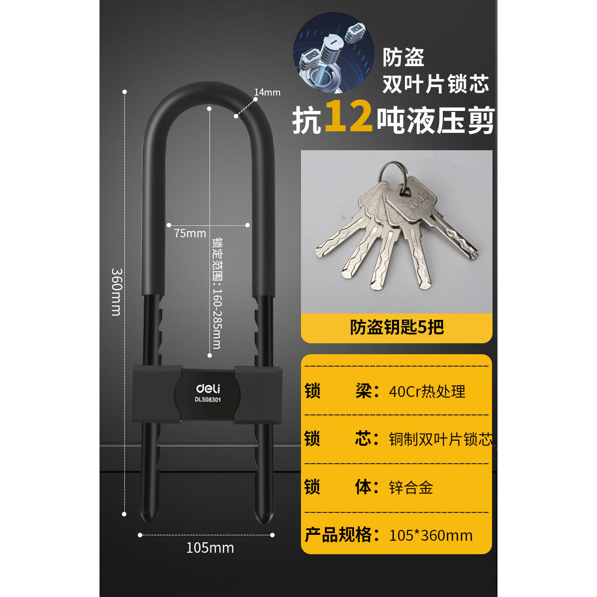 • 508312비밀번호 U자형 잠금장치 205-345mm(검정색)