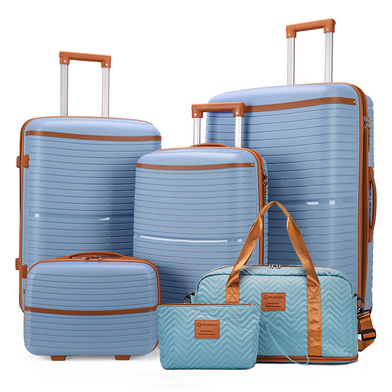 6종 세트 PP 트롤리 캐리어 방폭 지퍼 회전 바퀴 여행 가방 수납 박스 세트 기내용 캐리어스토어 가기