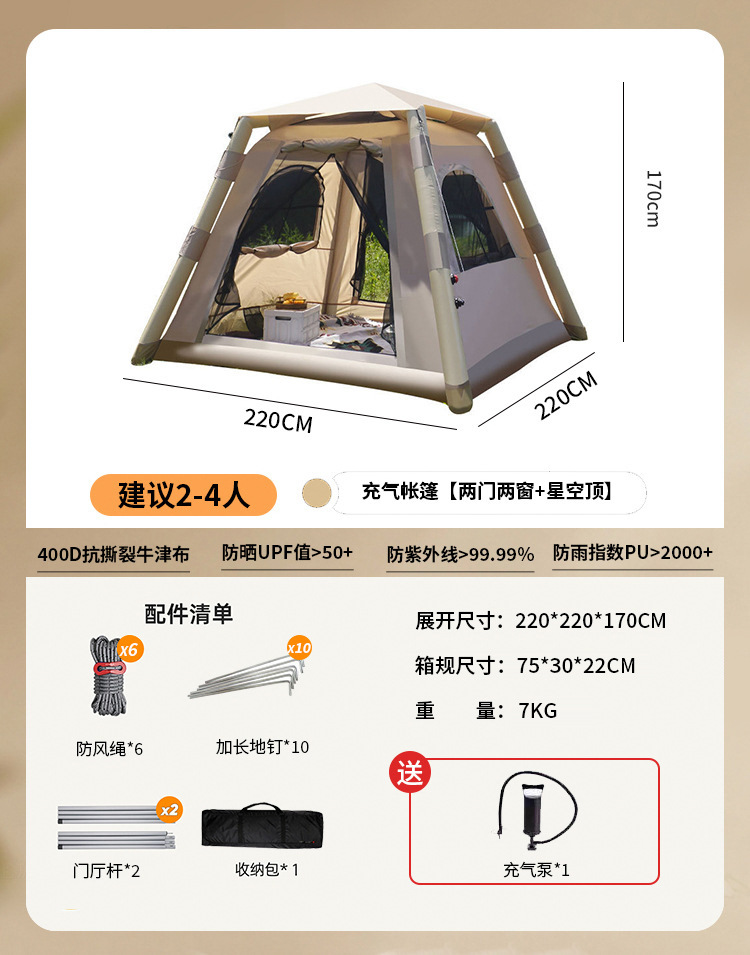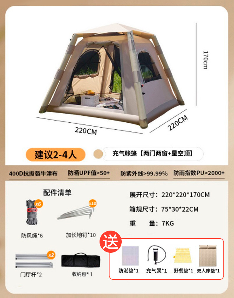 • 팽창식 텐트(수동 공기 펌프 + 방습 매트 + 피크닉 매트 + 공기 매트리스 포함)