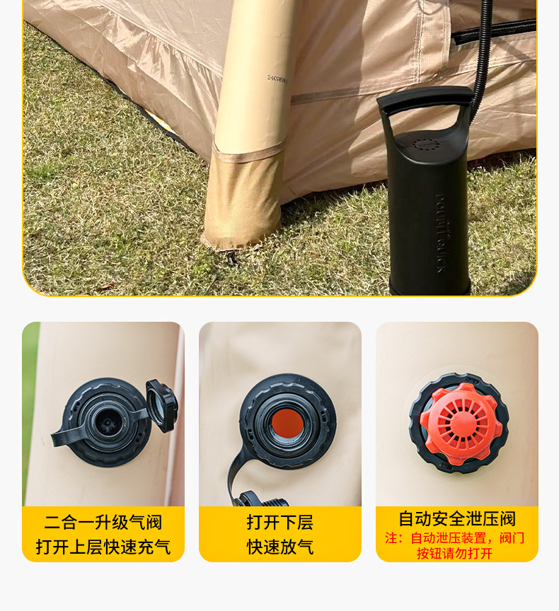 • 네 모서리 팽창식 텐트(수동 공기 펌프 + 방습 매트 포함)