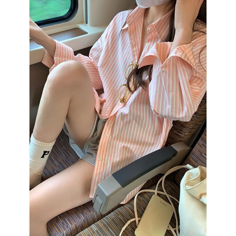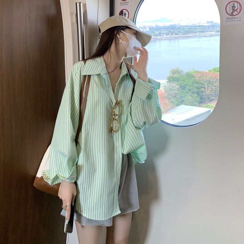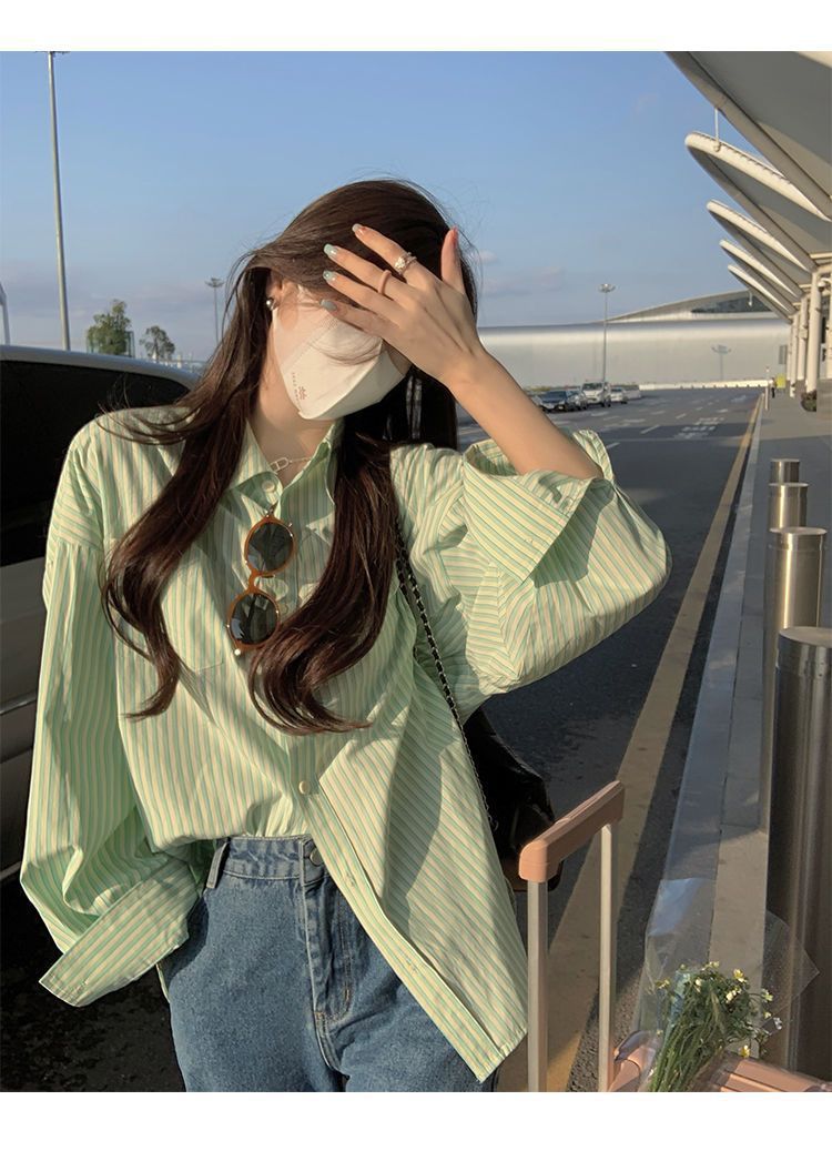 프랑스 틈새 디자인 센스 스트라이프 셔츠 여성용 긴팔 얇은 가을과 겨울 2025 새로운 패션 브랜드 셔츠 카디건 재킷스토어 가기