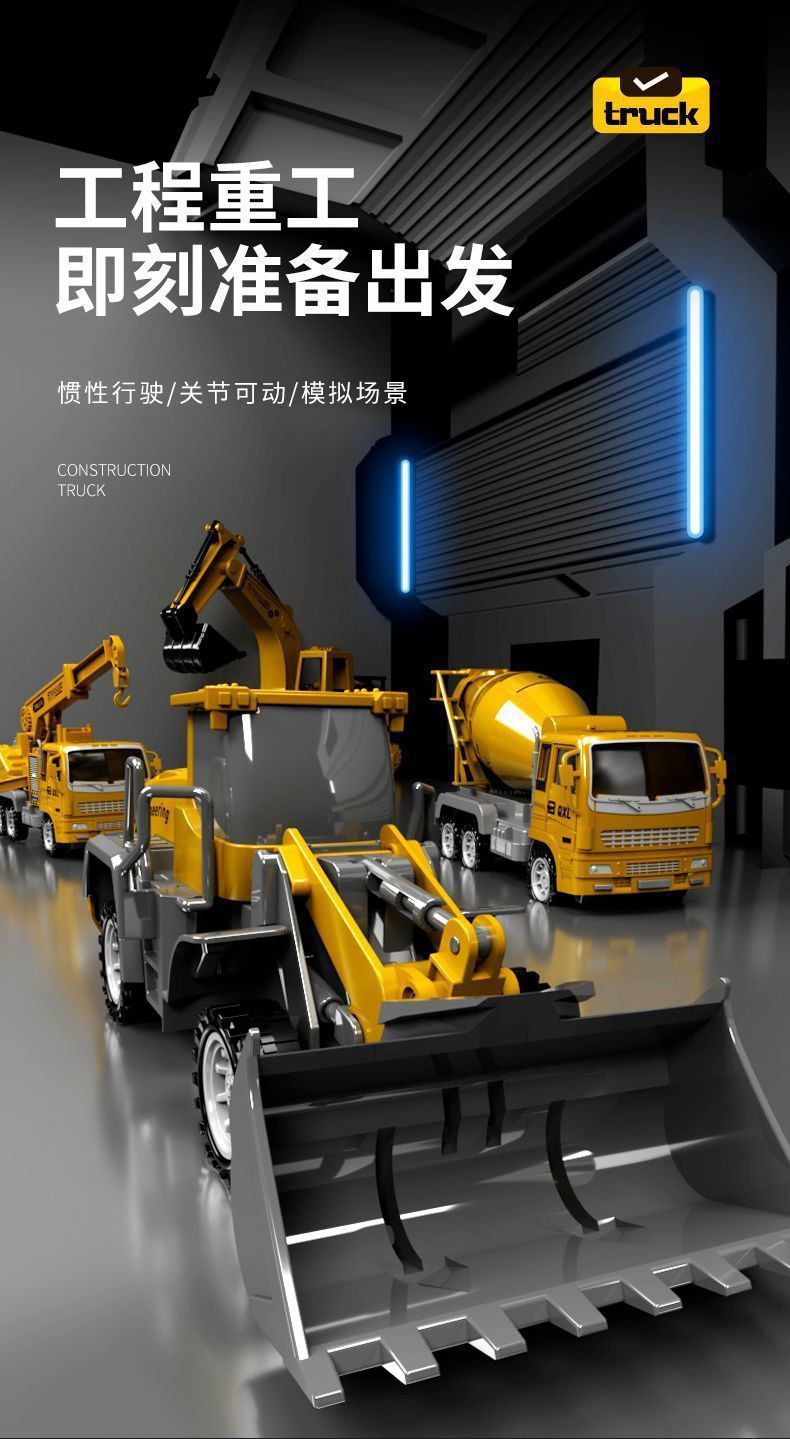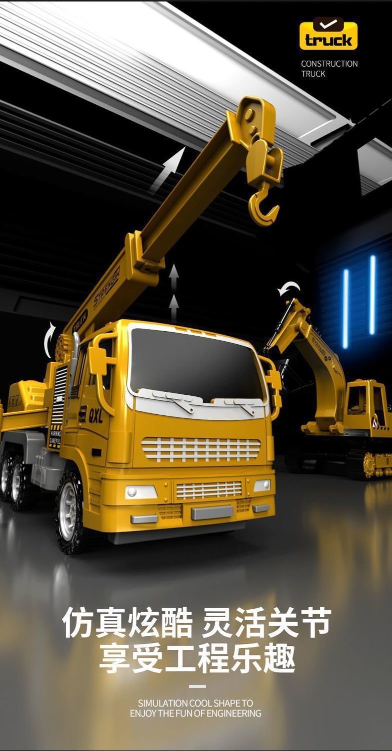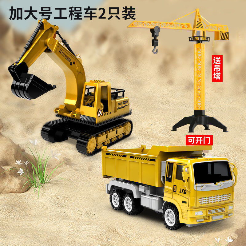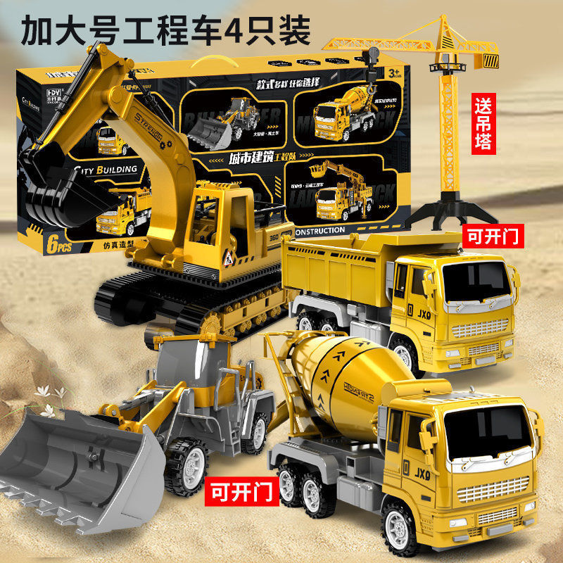 소년 장난감 대형 건설 차량 굴삭기 자동차 어린이 굴삭기 혼합 크레인 선물 상자 세트스토어 가기