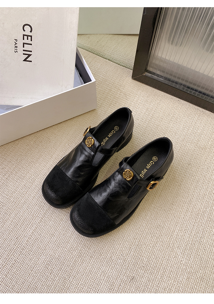 2025 봄 새로운 빈티지 동백 깊은 입 메리 제인 신발 여성의 두꺼운 바닥 두꺼운 슬립 온 둥근 발가락 작은 가죽 신발스토어 가기
