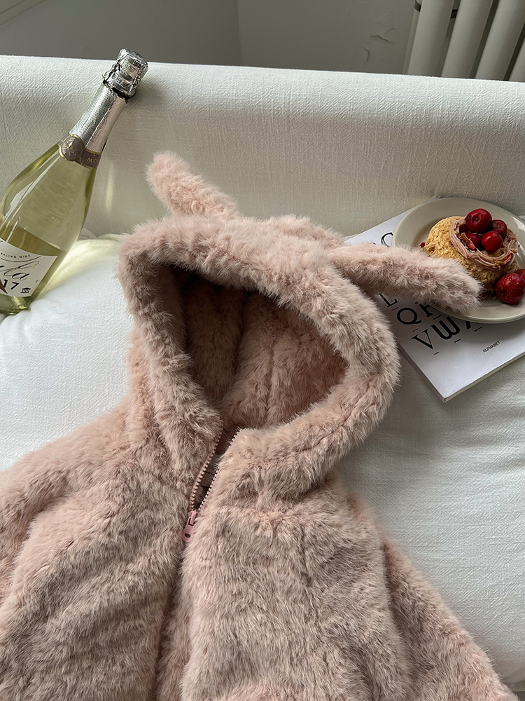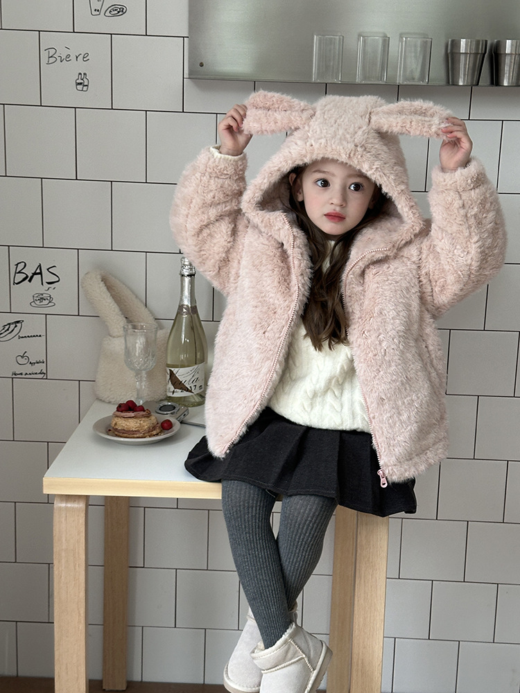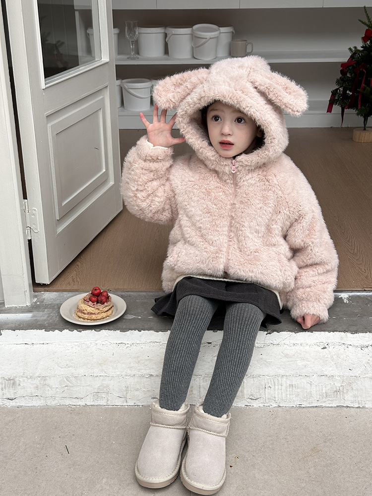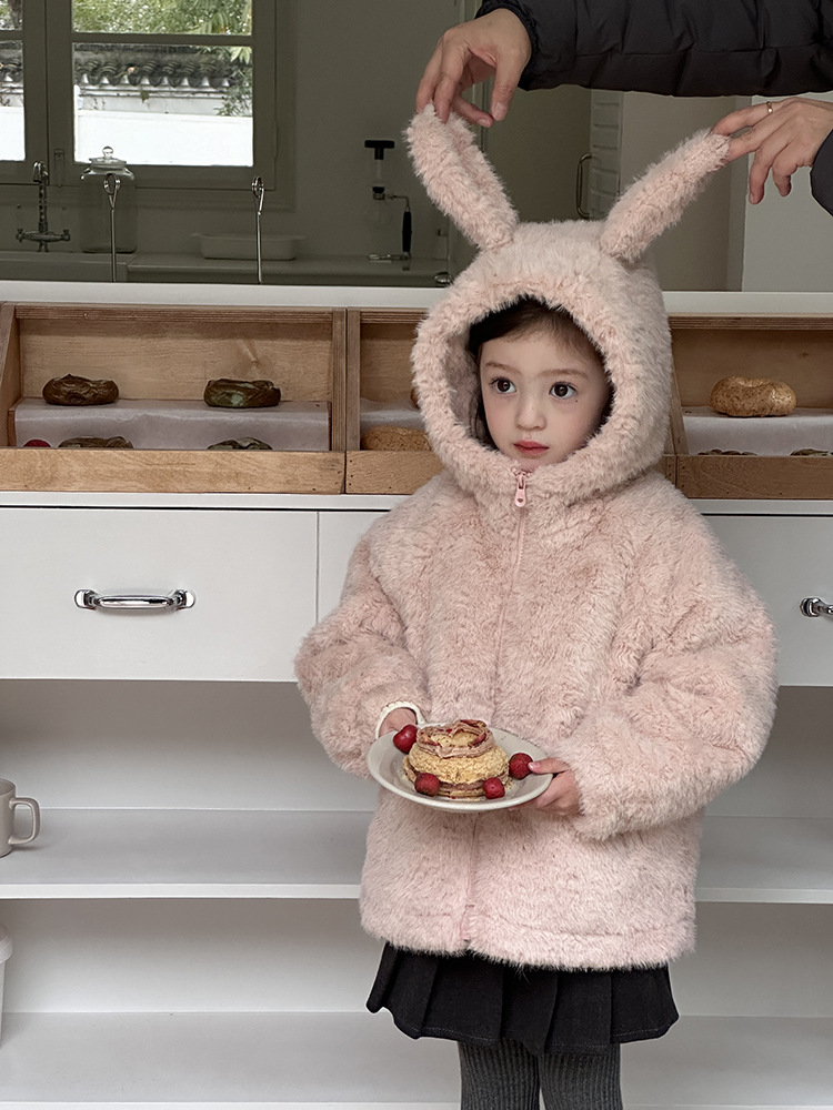 [두꺼운 벨벳] 중형 및 대형 여아용 귀여운 따뜻한 면 코트, 아동용 세련된 토끼 플러시 코트