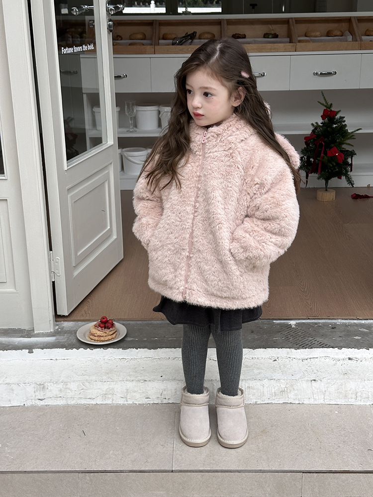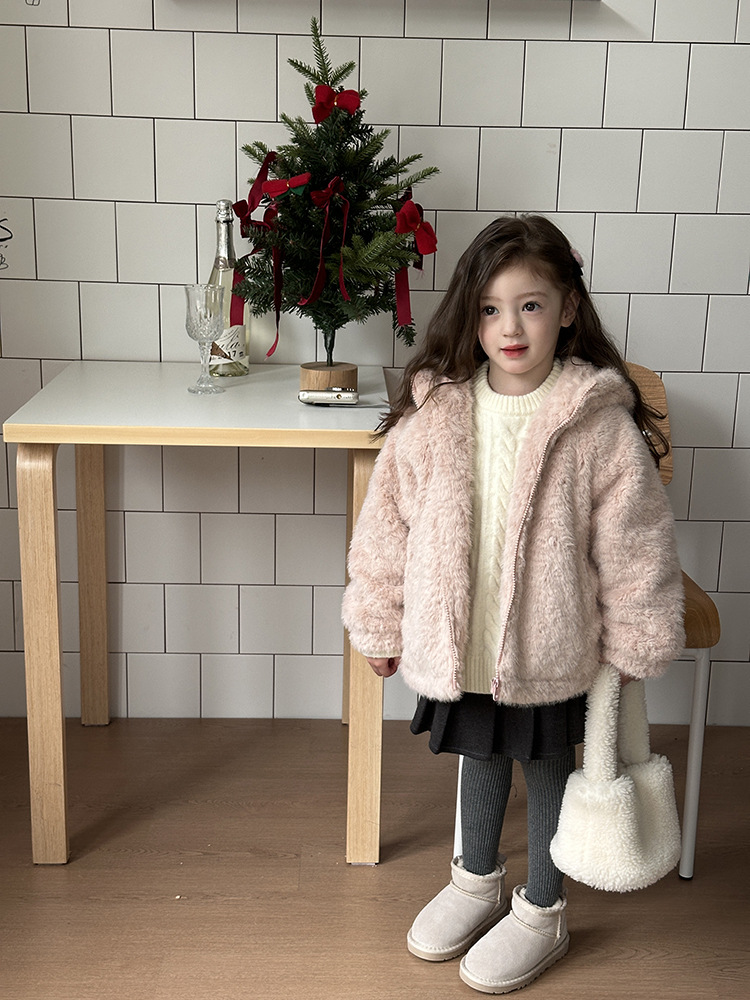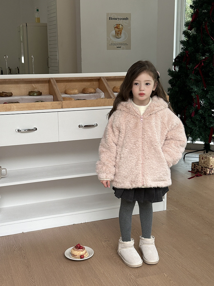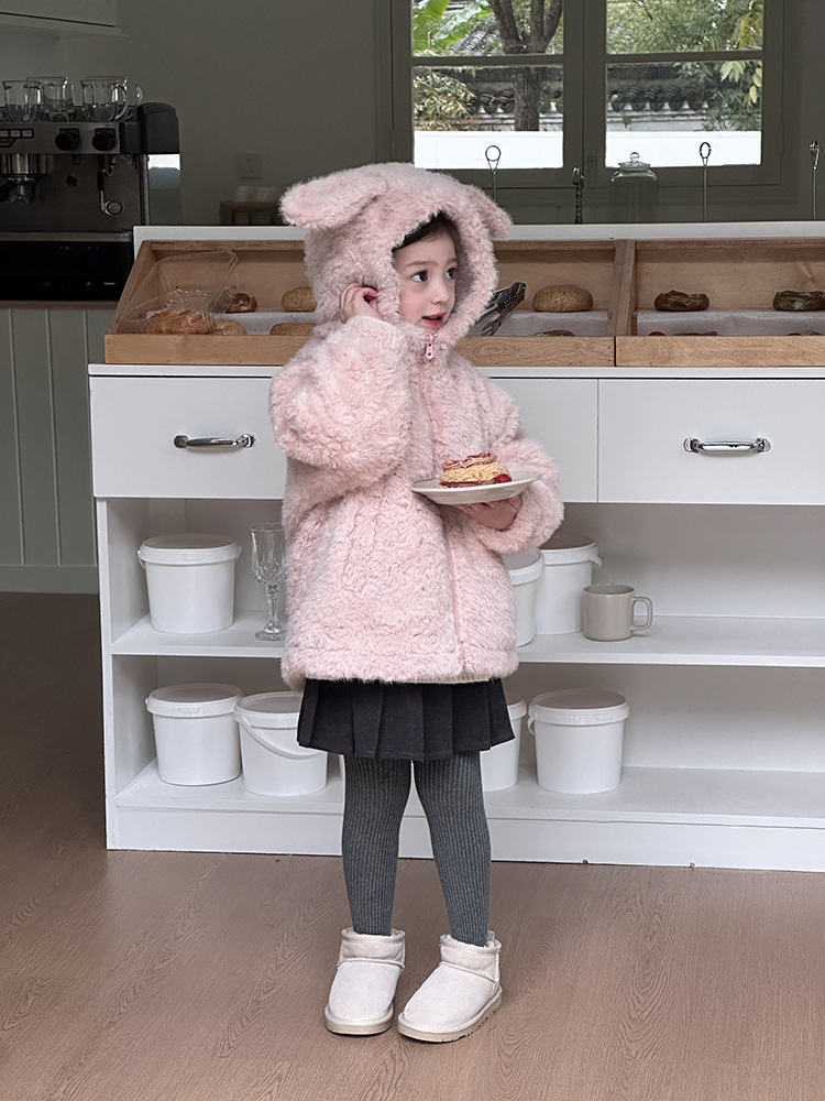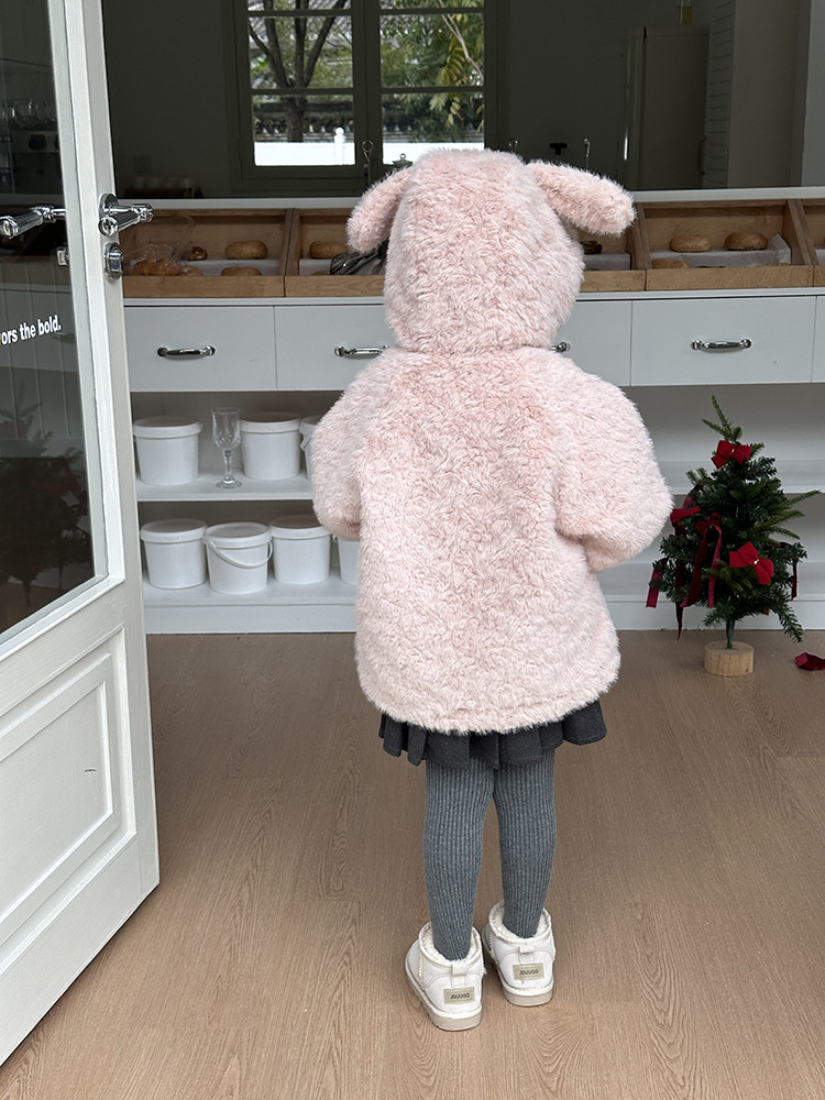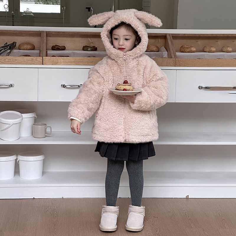 [두꺼운 벨벳] 중형 및 대형 여아용 귀여운 따뜻한 면 코트, 아동용 세련된 토끼 플러시 코트스토어 가기