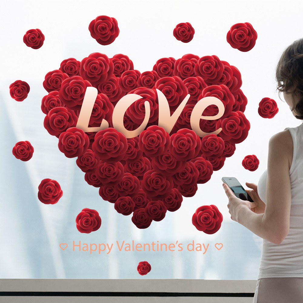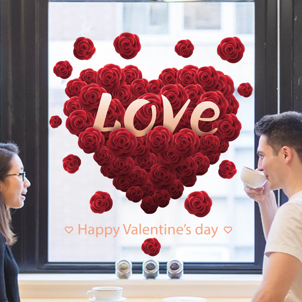 Yiyao DD229053 발렌타인 데이 제한 연인 장미 편지 창 스티커 침실 발코니 장식 정전기 스티커스토어 가기
