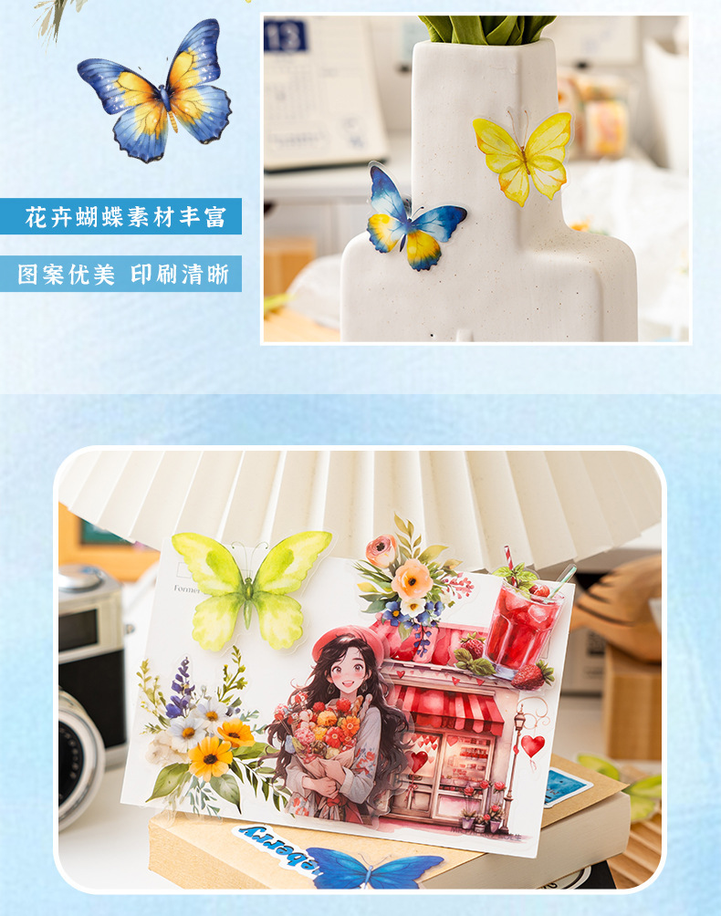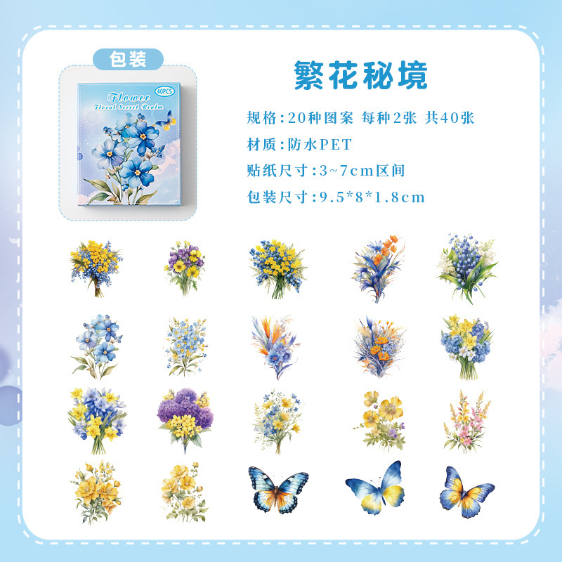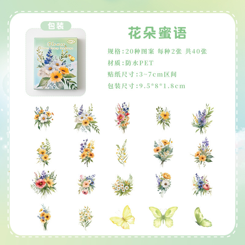 꽃 만개 PET 박스 스티커 낭만적 인 작은 신선한 꽃 손 계정 장식 기본 조경 소재 스티커스토어 가기