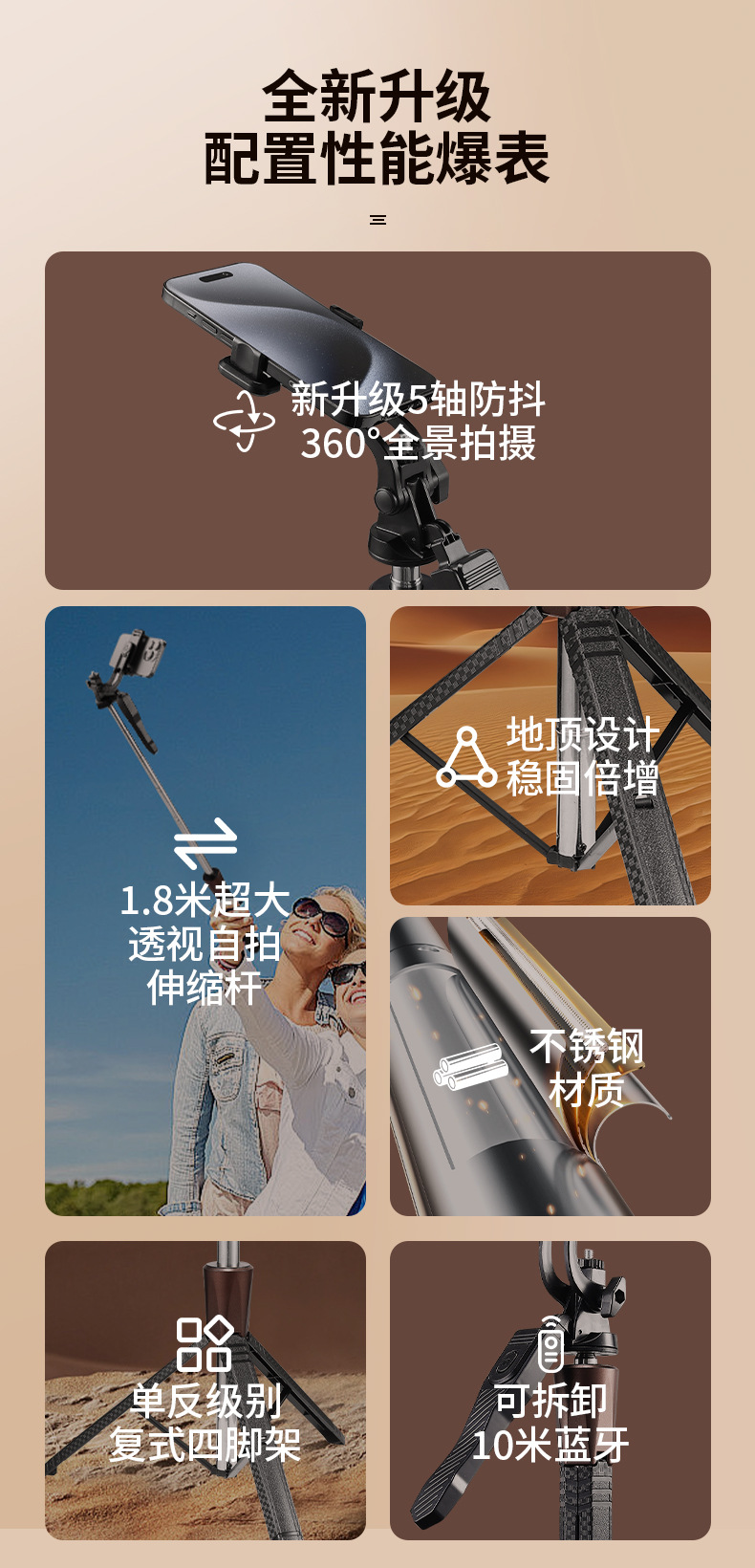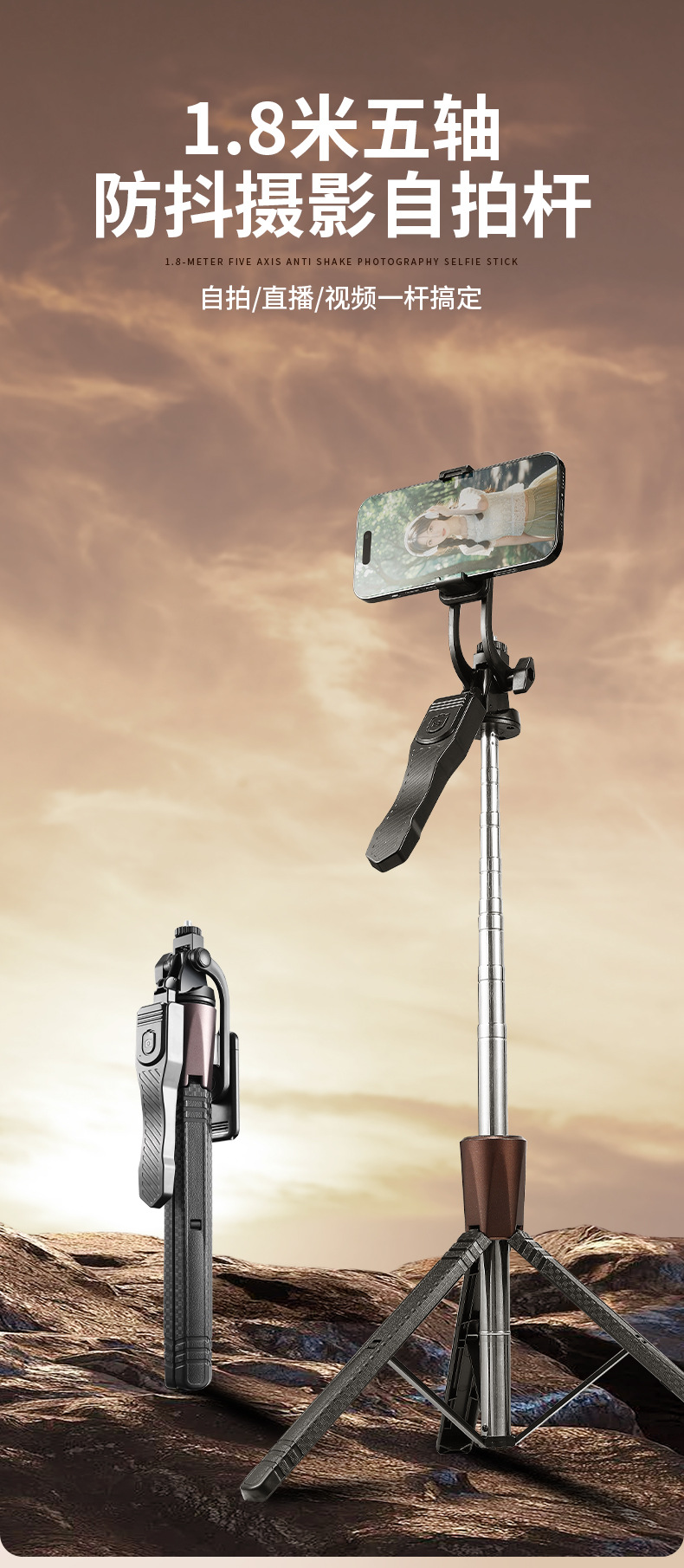 1.8 미터 새로운 휴대 전화 블루투스 셀카 스틱 유니버설 휴대 전화 안정기 라이브 바닥 스탠드 삼각대 셀카 스틱