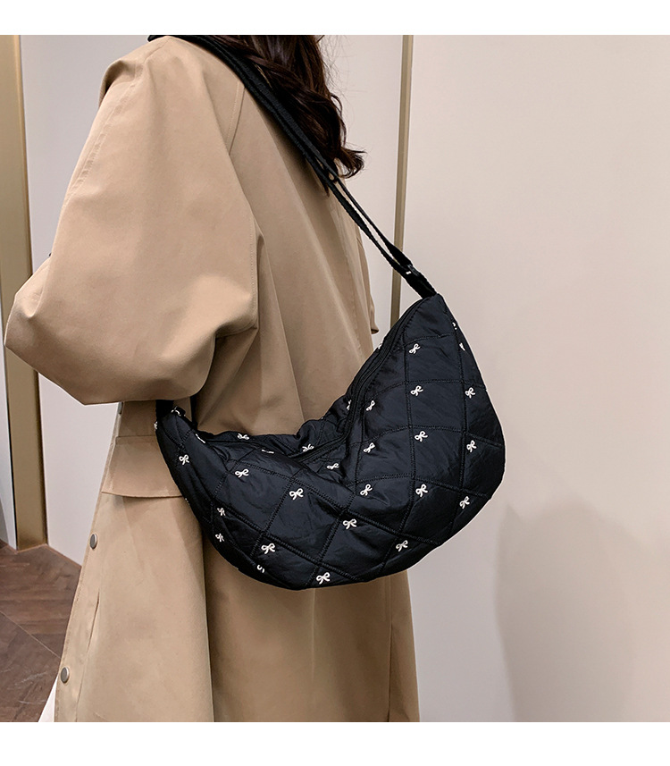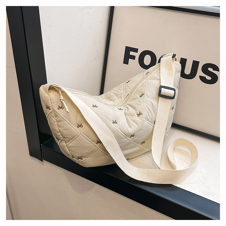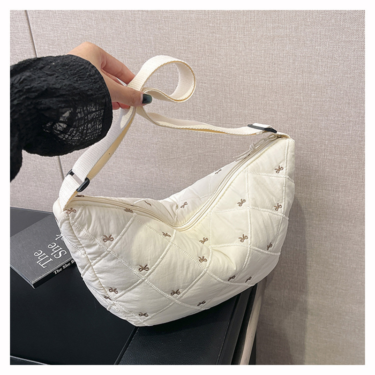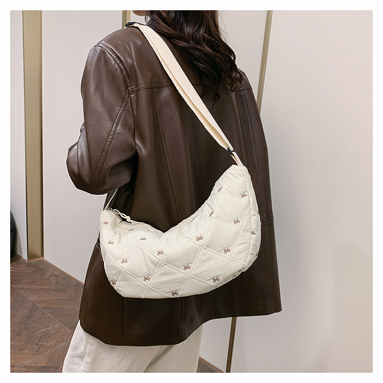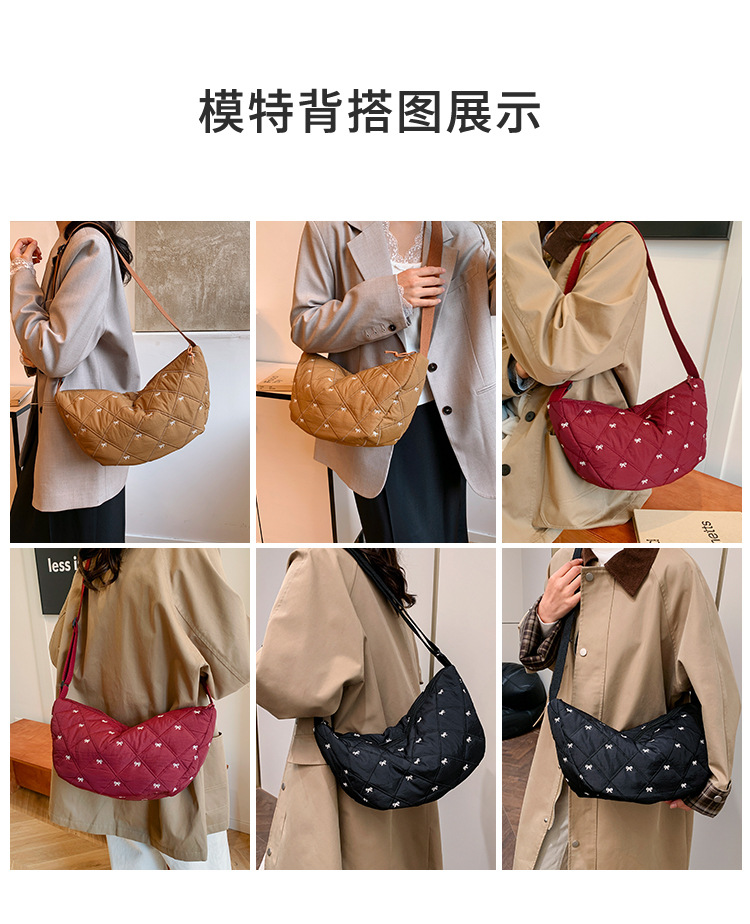 세련된 몸매가 달린 어깨 가방 여성의 2024 새로운 겨울 핸드백 자수 크로스 바디 백 유행 속옷 가방