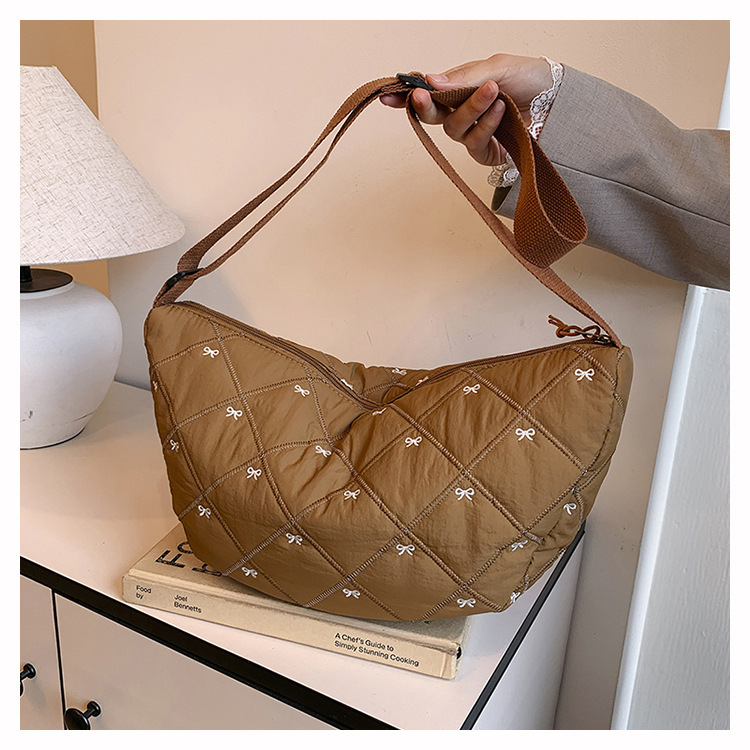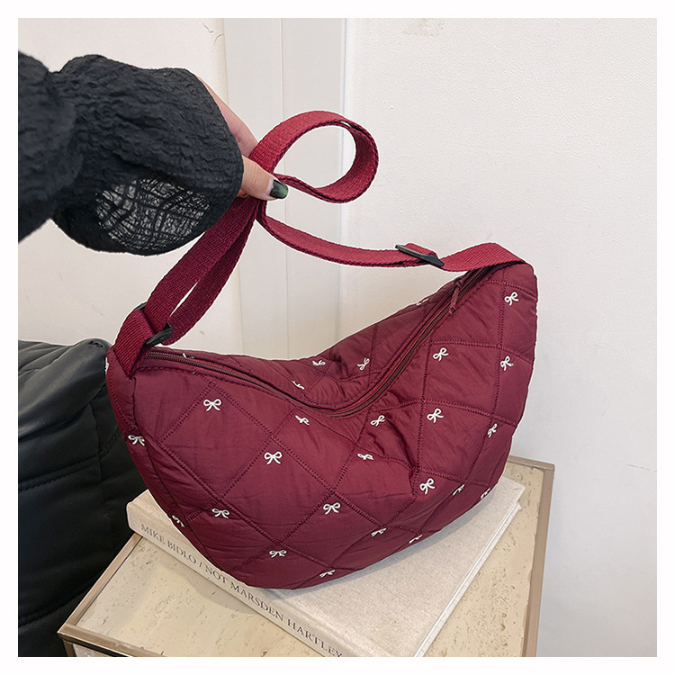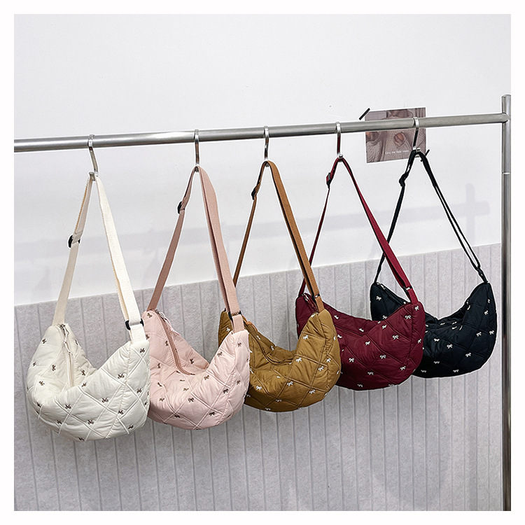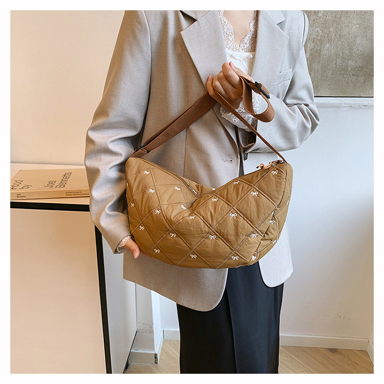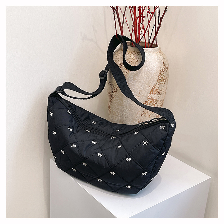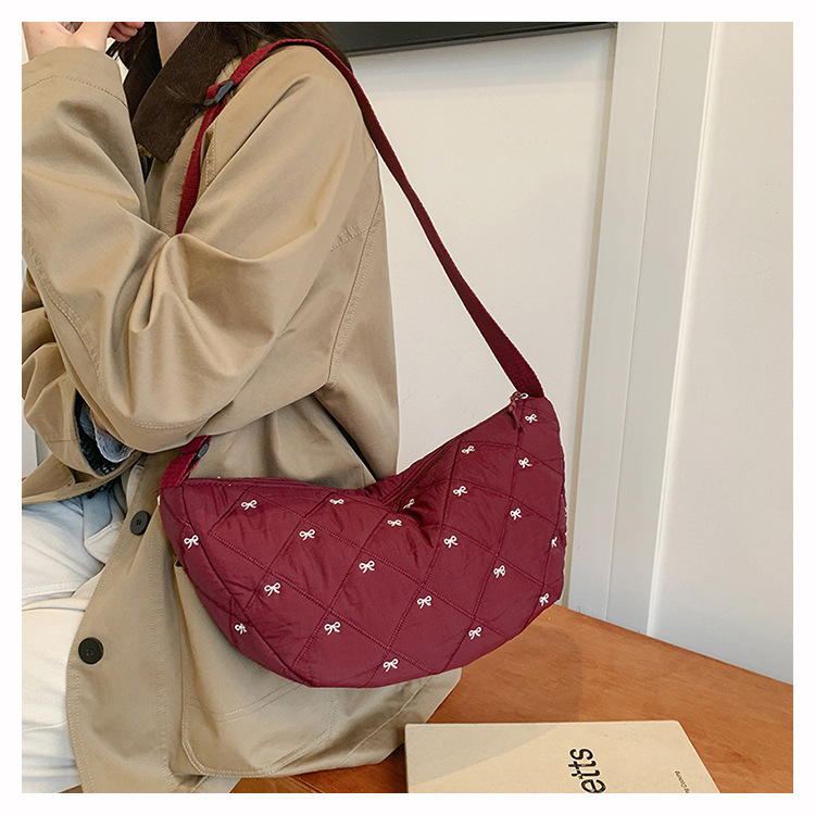 세련된 몸매가 달린 어깨 가방 여성의 2024 새로운 겨울 핸드백 자수 크로스 바디 백 유행 속옷 가방