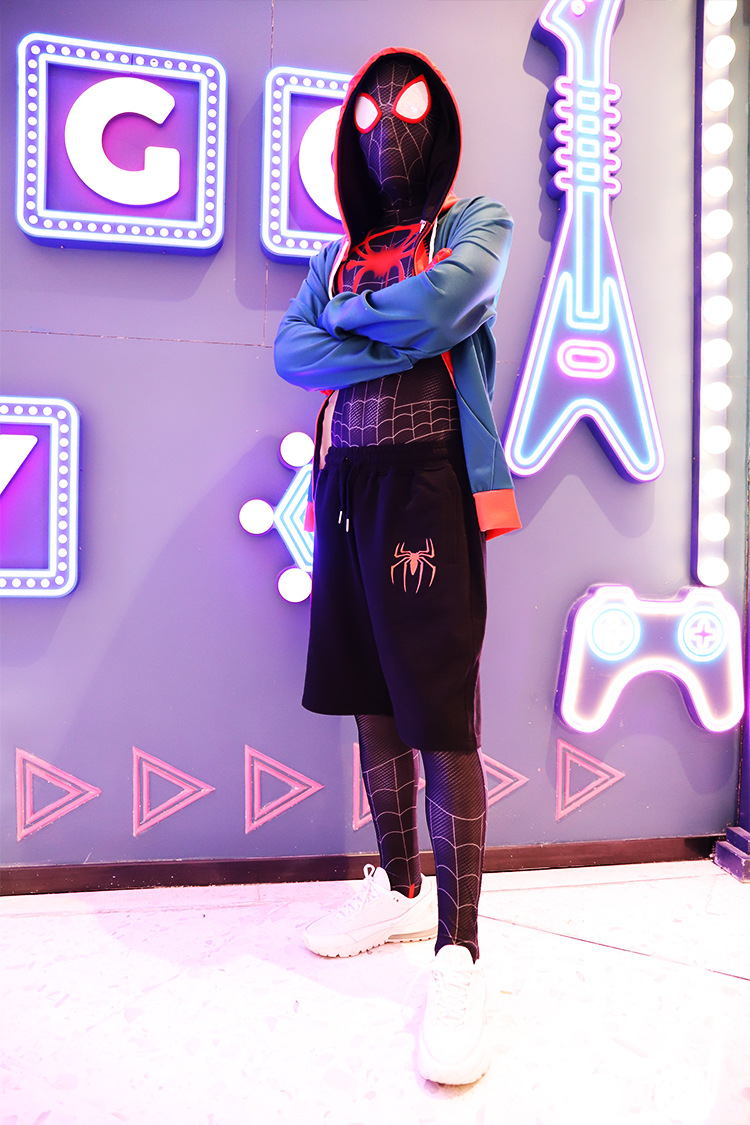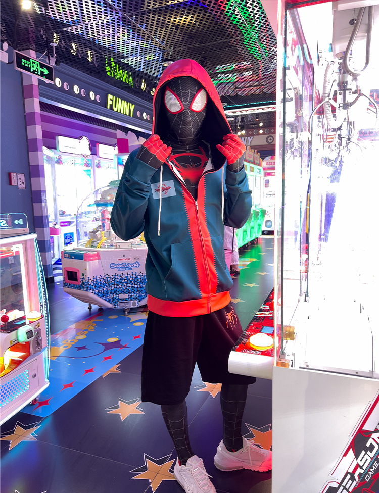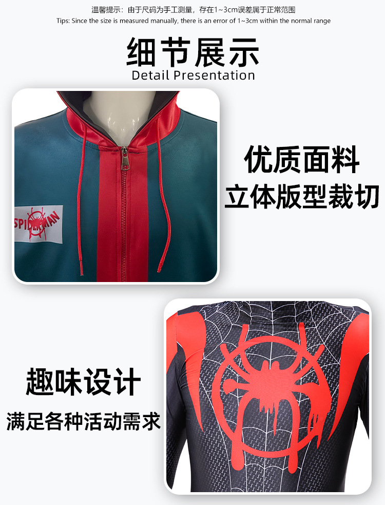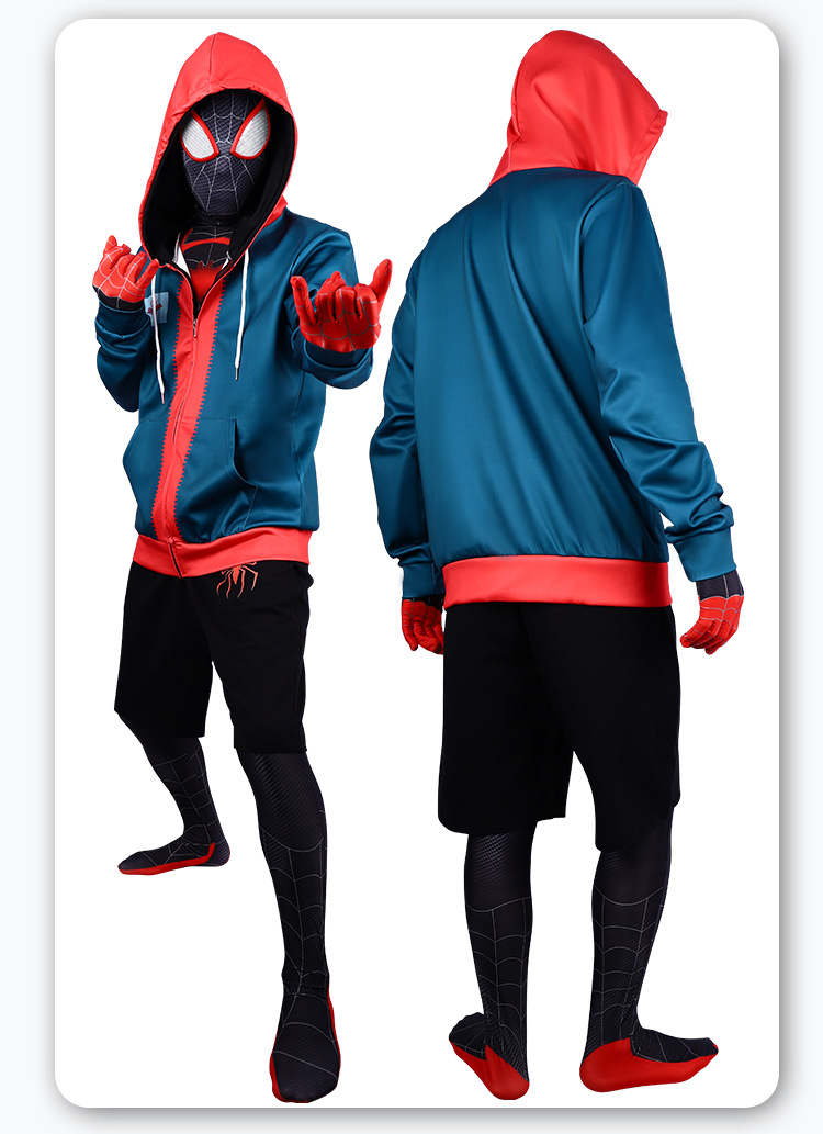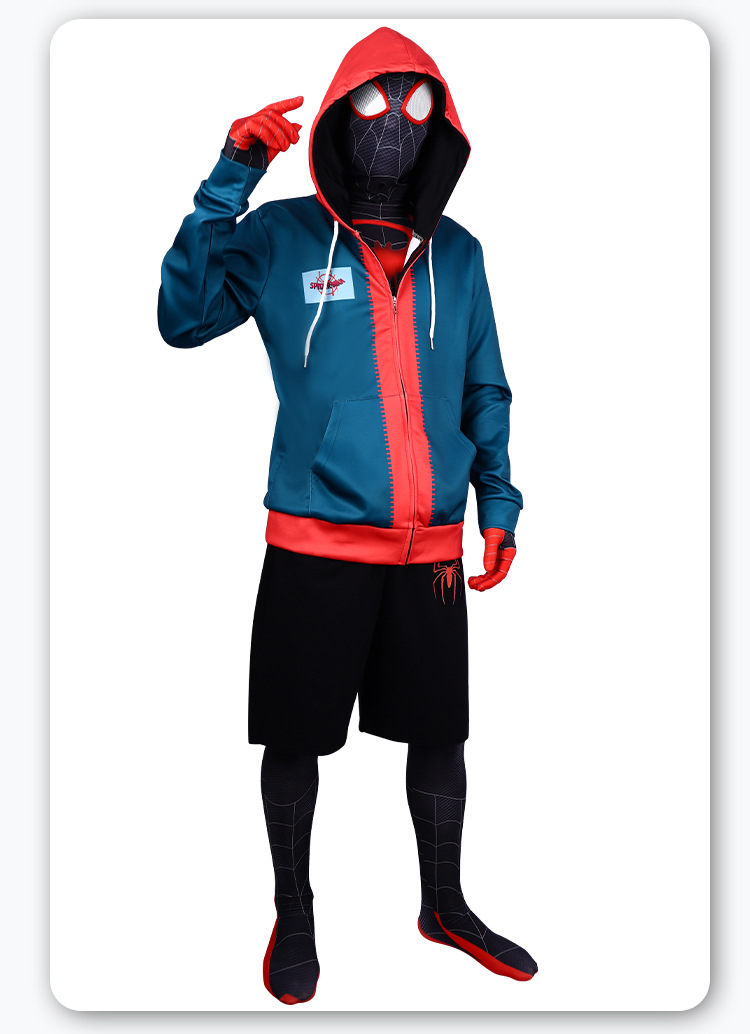 Parallel Universe 스파이더 맨 스타킹 점프 슈트 코스프레 의상 성인 코트 후드 마일즈 스웨트 셔츠스토어 가기