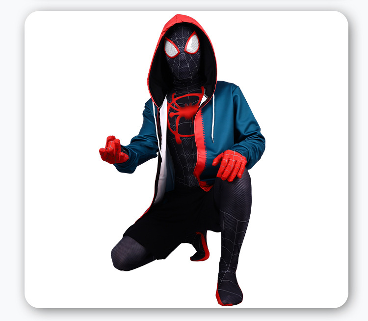 Parallel Universe 스파이더 맨 스타킹 점프 슈트 코스프레 의상 성인 코트 후드 마일즈 스웨트 셔츠