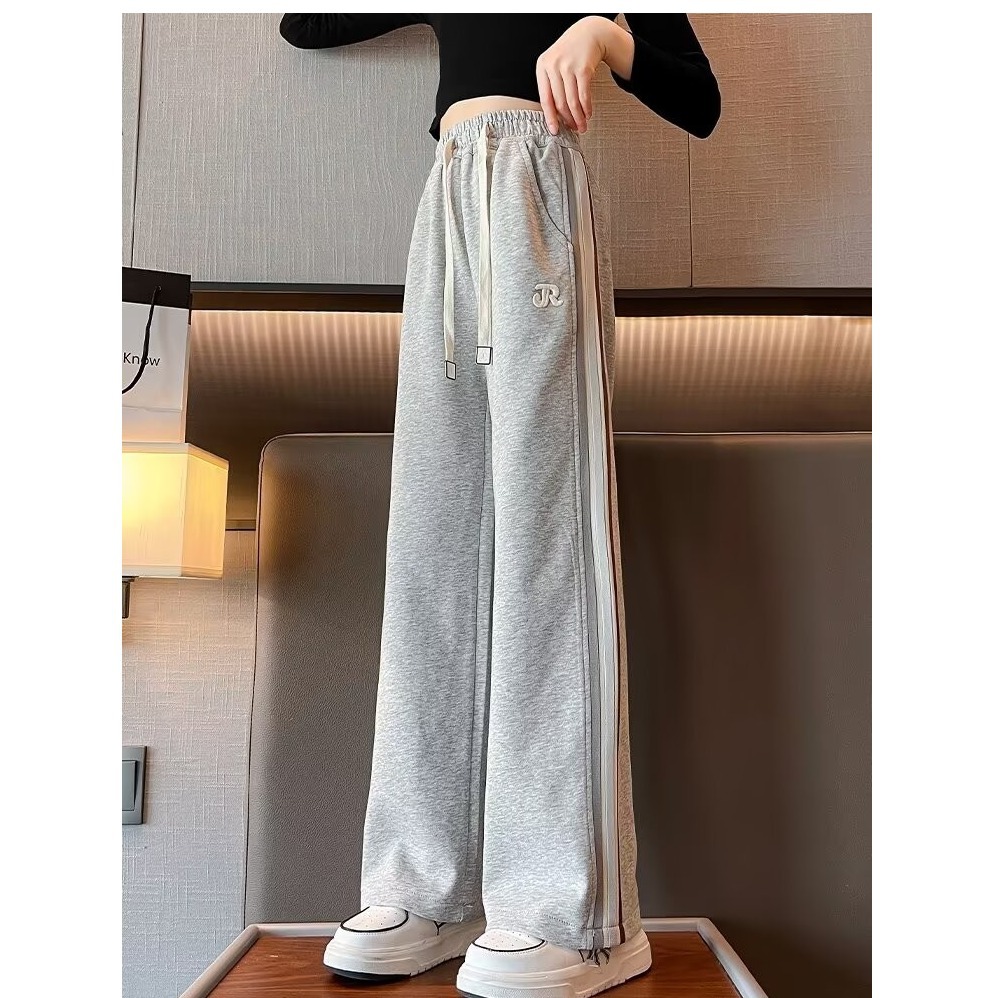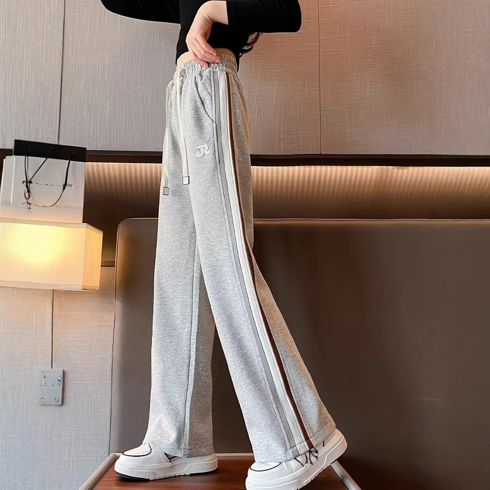 여아 한국 스타일 서양식 여아 중대형 아동용 스트레이트 루즈 팬츠 봄, 가을 캐주얼 와이드 팬츠 니트 롱 팬츠 트렌디