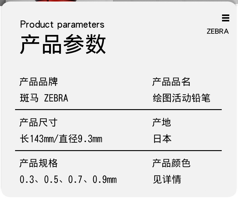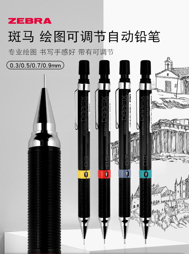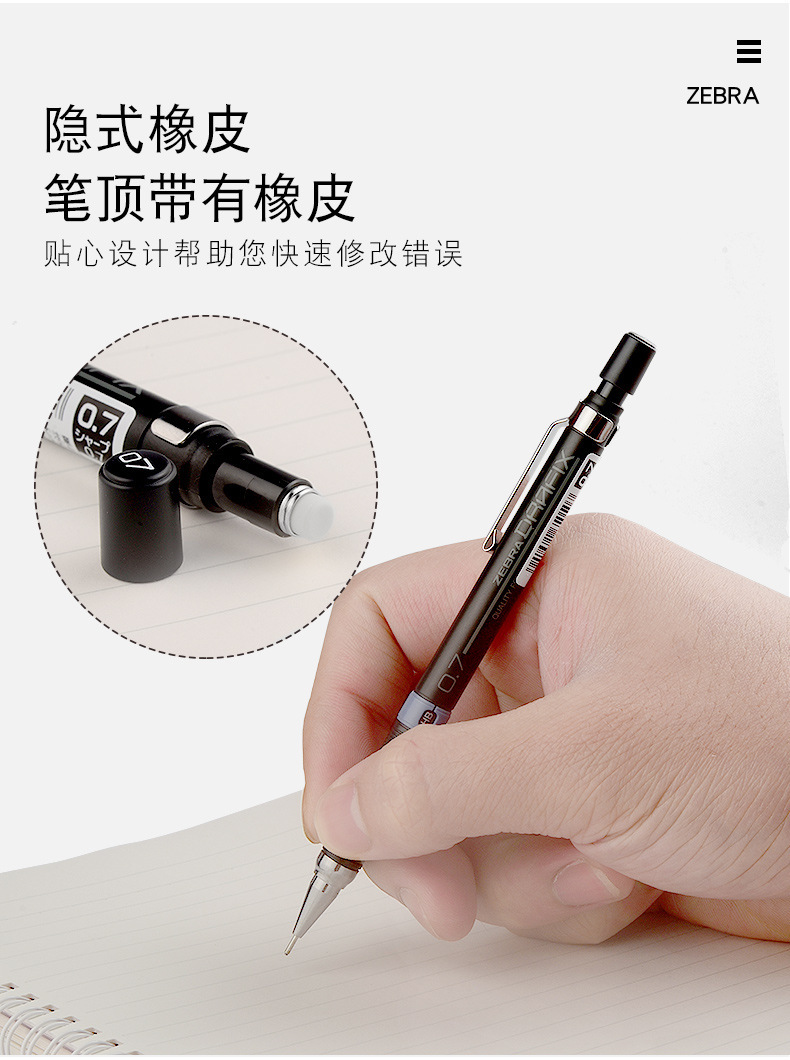 얼룩말 0.3/0.5/0.7mm 기계 연필 아트 드로잉 지우개 기계 연필로 연속 코어 쓰기스토어 가기