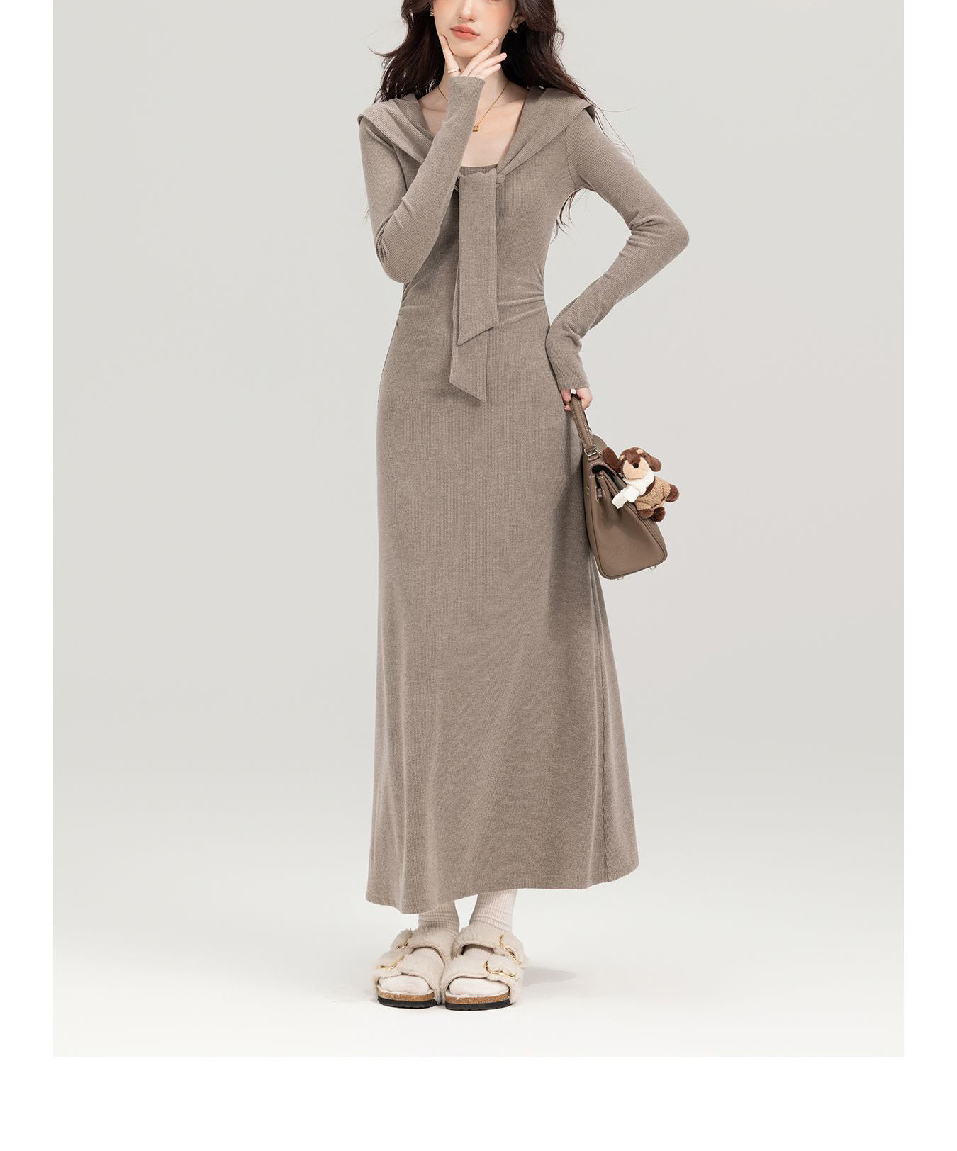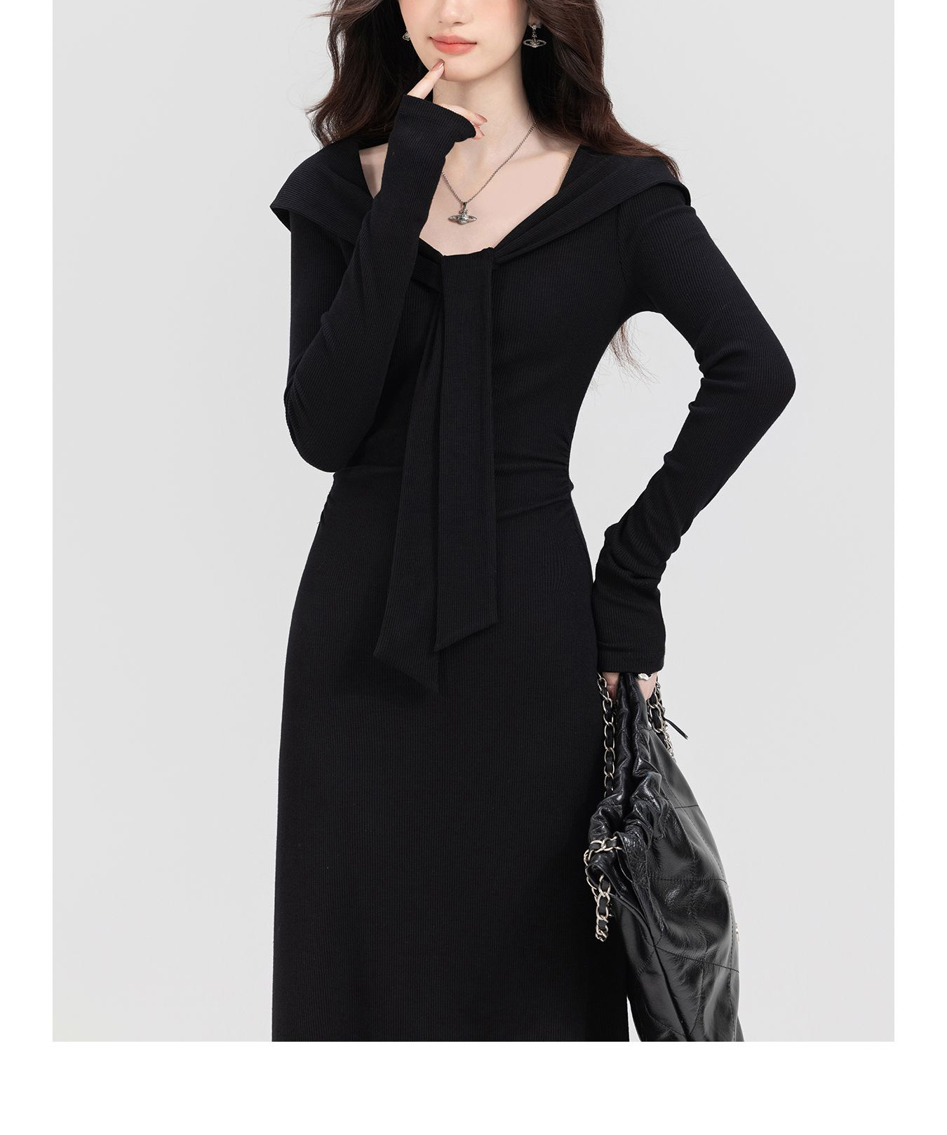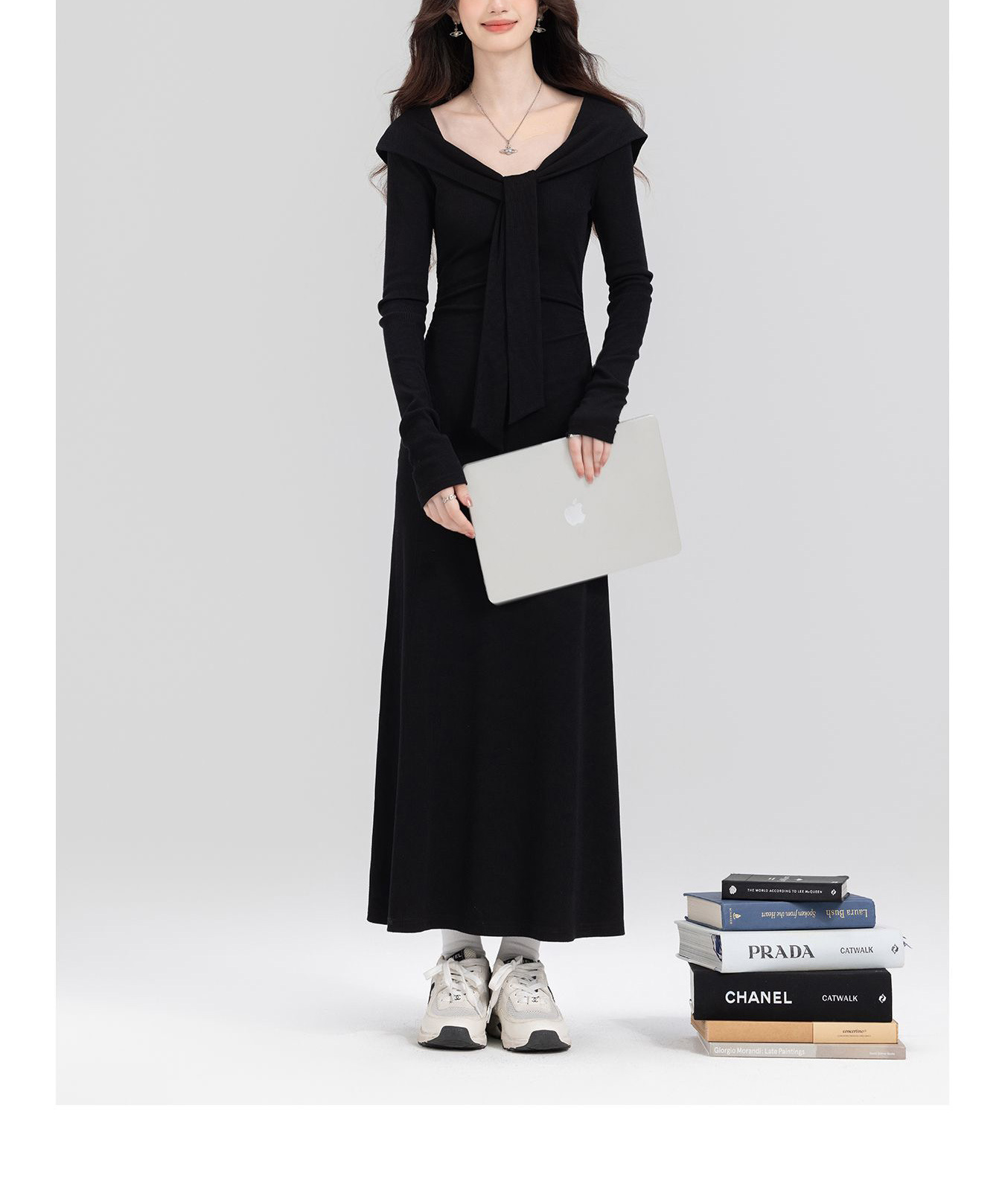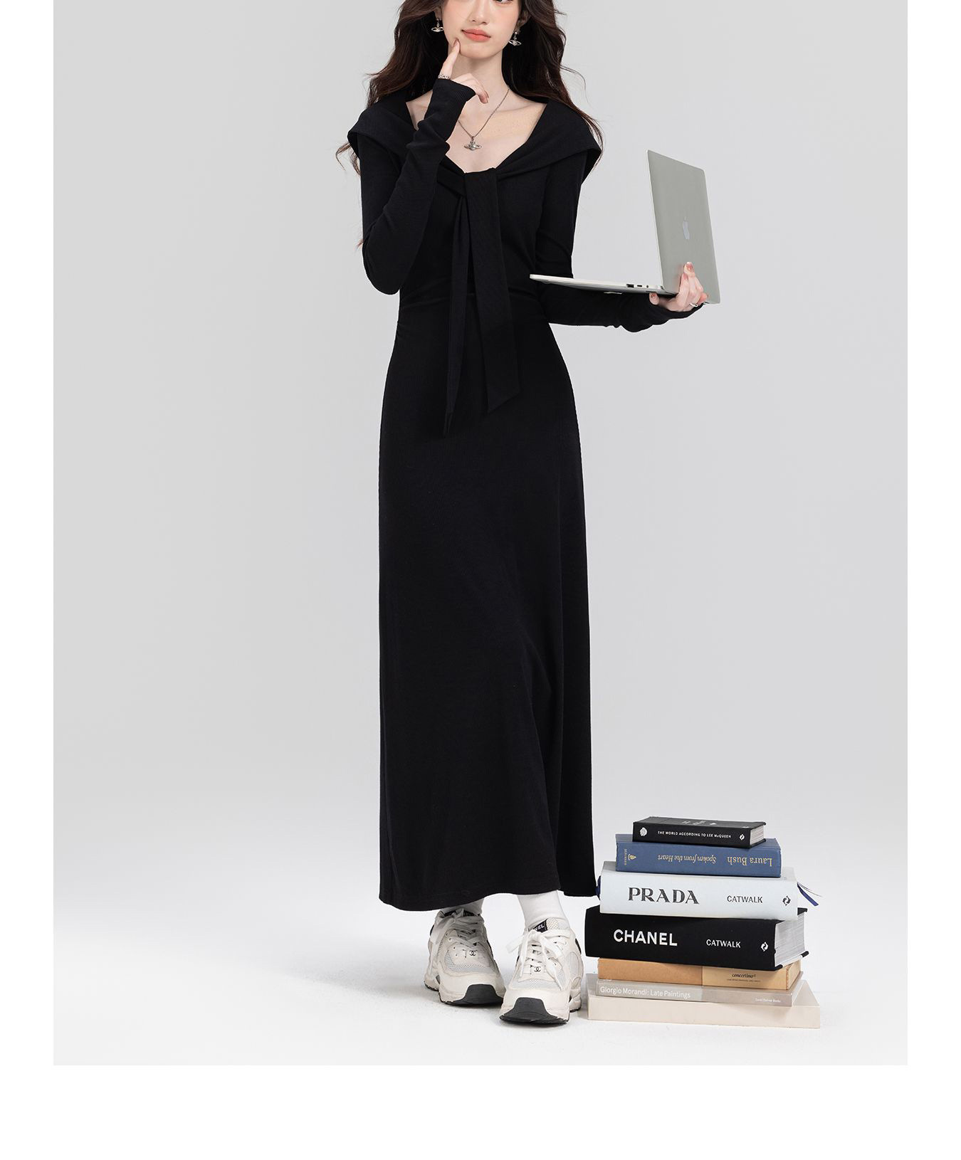 프랑스 스타일 게으른 스타일 디자인 센스 긴팔 원피스 여성 봄과 가을 새로운 하이 엔드 센스 타이트 허리 엉덩이 긴 스커트