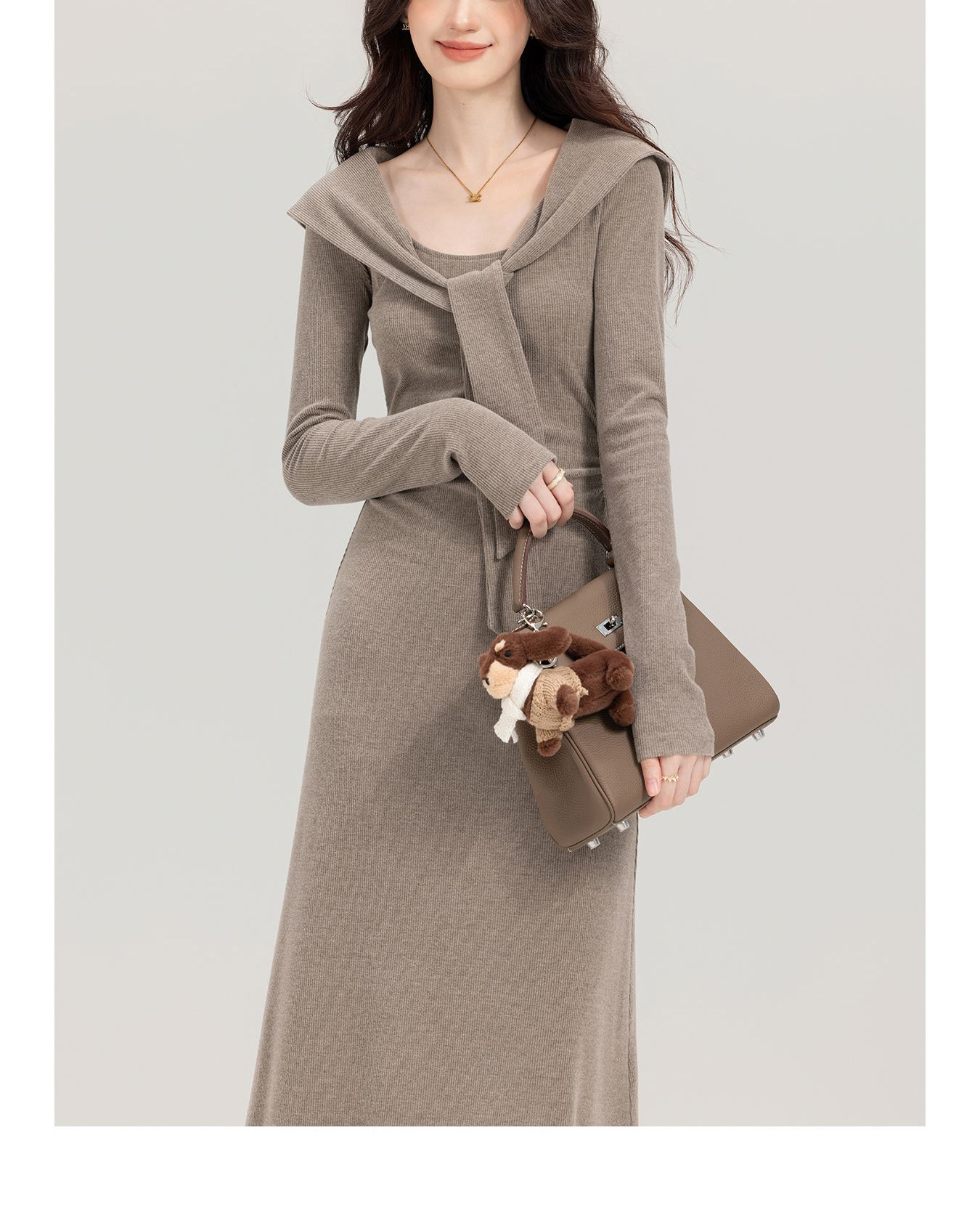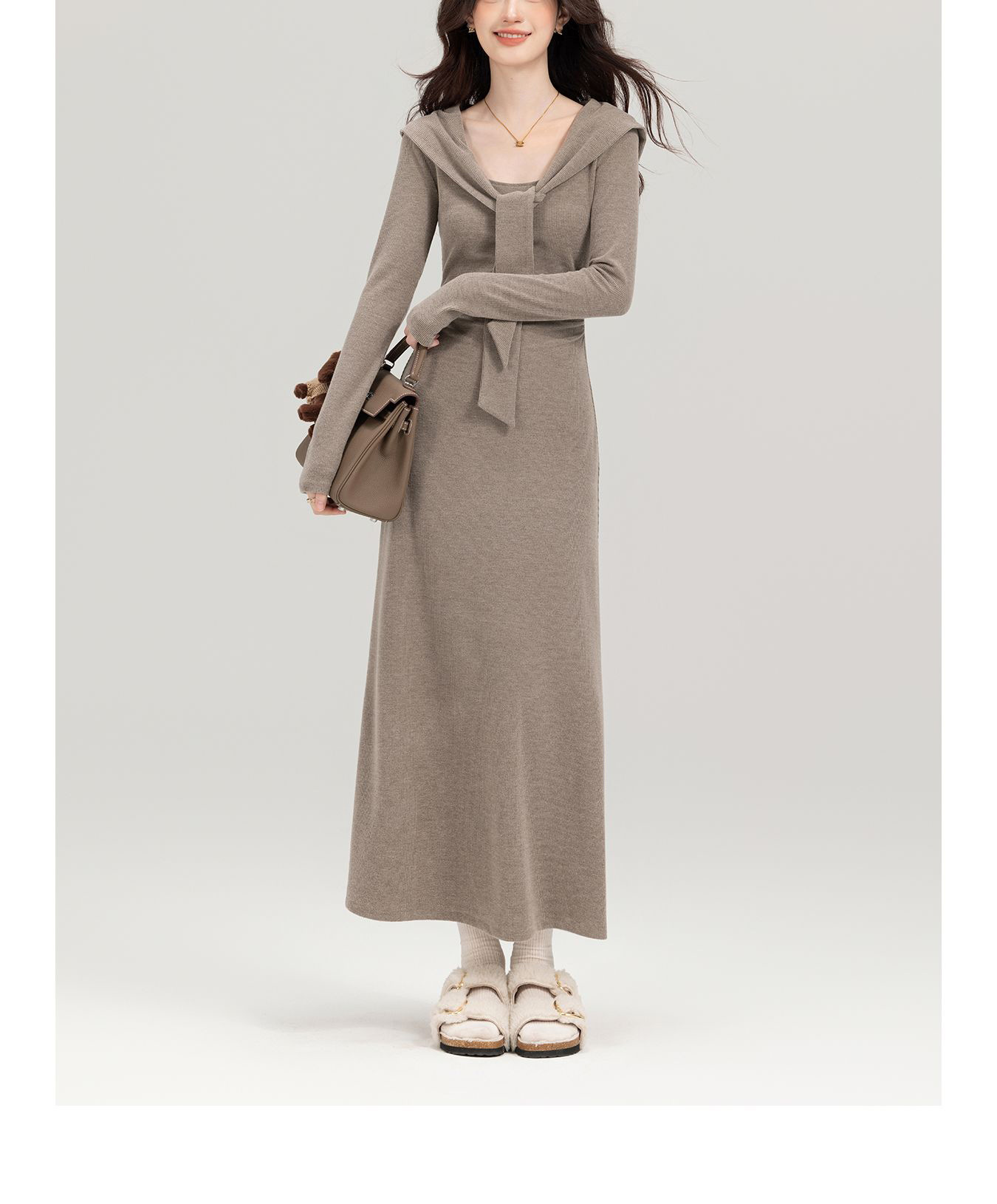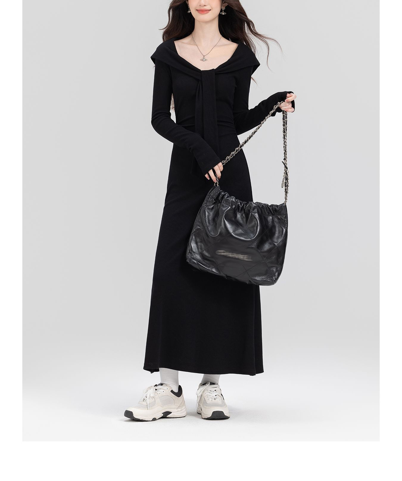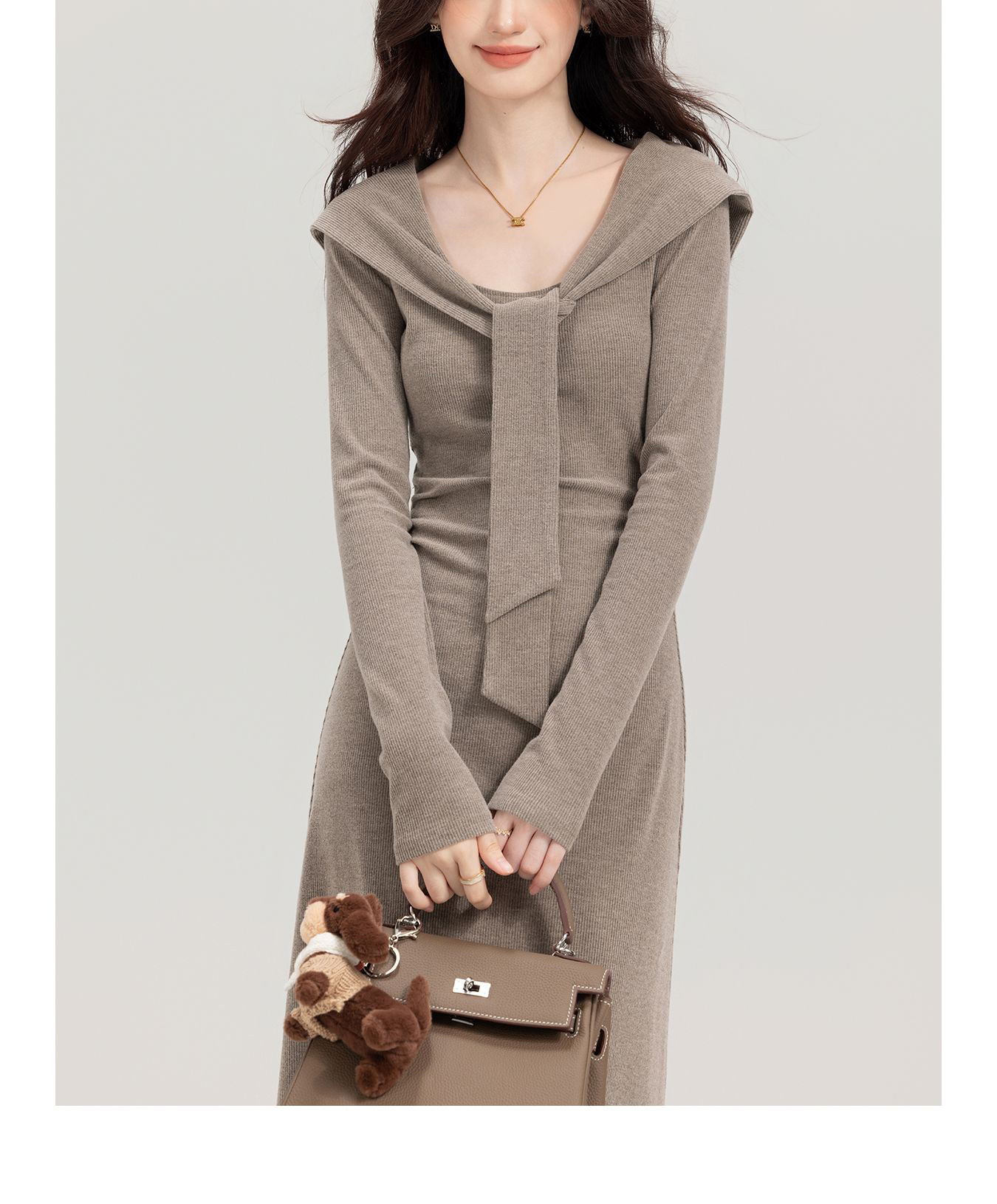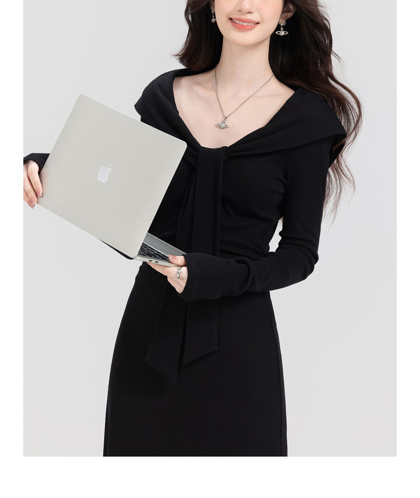 프랑스 스타일 게으른 스타일 디자인 센스 긴팔 원피스 여성 봄과 가을 새로운 하이 엔드 센스 타이트 허리 엉덩이 긴 스커트