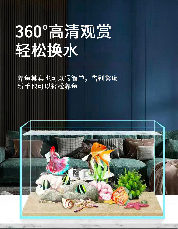 진징 5 선 슈퍼 화이트 유리 직각 어항 중소 거실 가정용 거북 탱크 금붕어 탱크 스트림 탱크스토어 가기