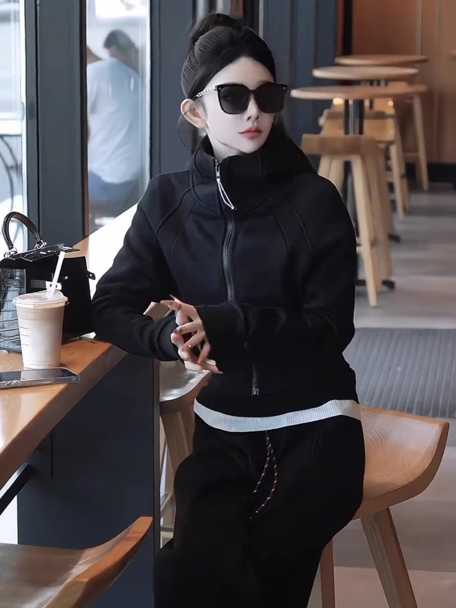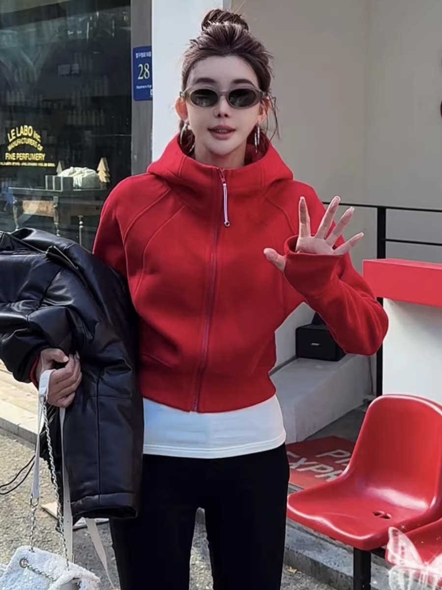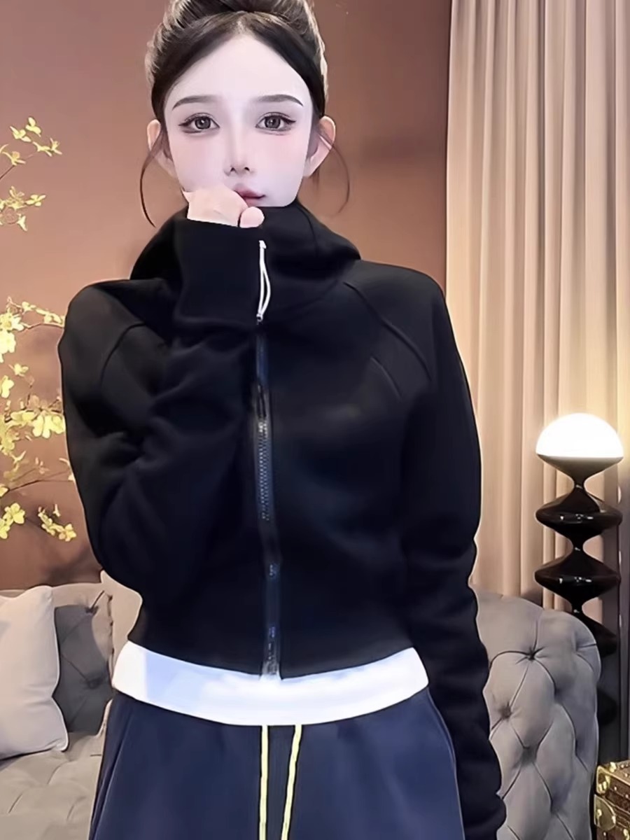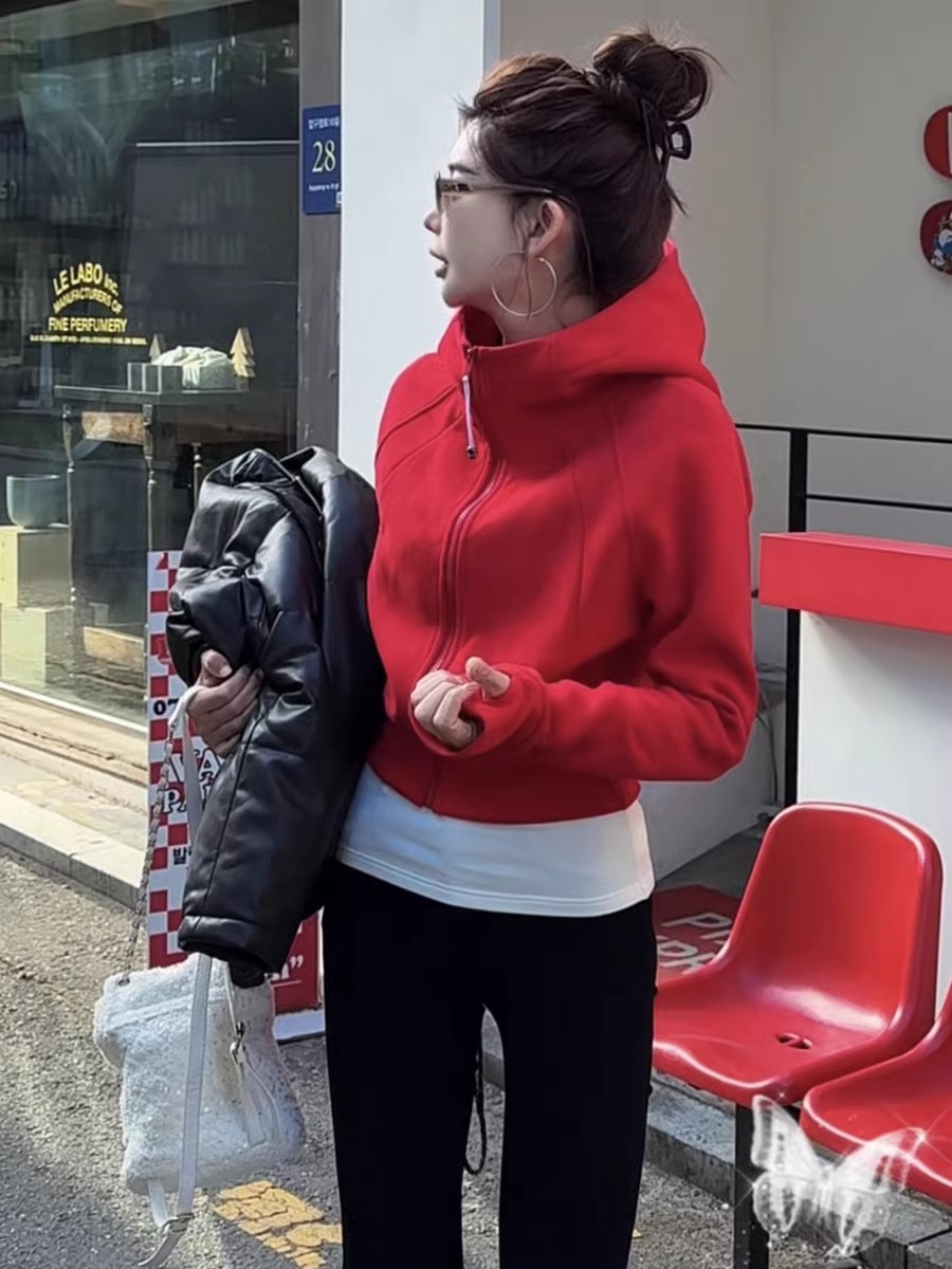유럽 기모 두꺼운 지퍼 후디 재킷 여자 2024 겨울 패션 올 매치 카디건 야구 재킷 탑스토어 가기