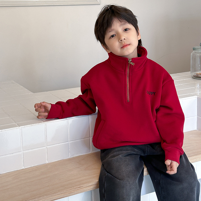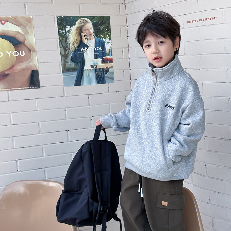 【클리어런스 세일】두꺼운 기모 안감 아동용 하프 지퍼 폴로셔츠 남아용 레터링 멋진 오리온 벨벳 스웨트셔츠스토어 가기