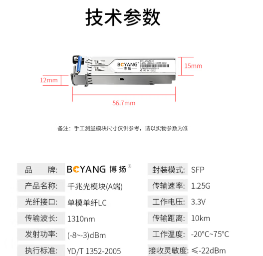 博扬 BY-1.25GA210 SFP光模块千兆1.25G单模单纤光纤模块(1310nm,10km,LC)A端国产设备用 SFP-GE-LX-SM1310-A*1*合格证