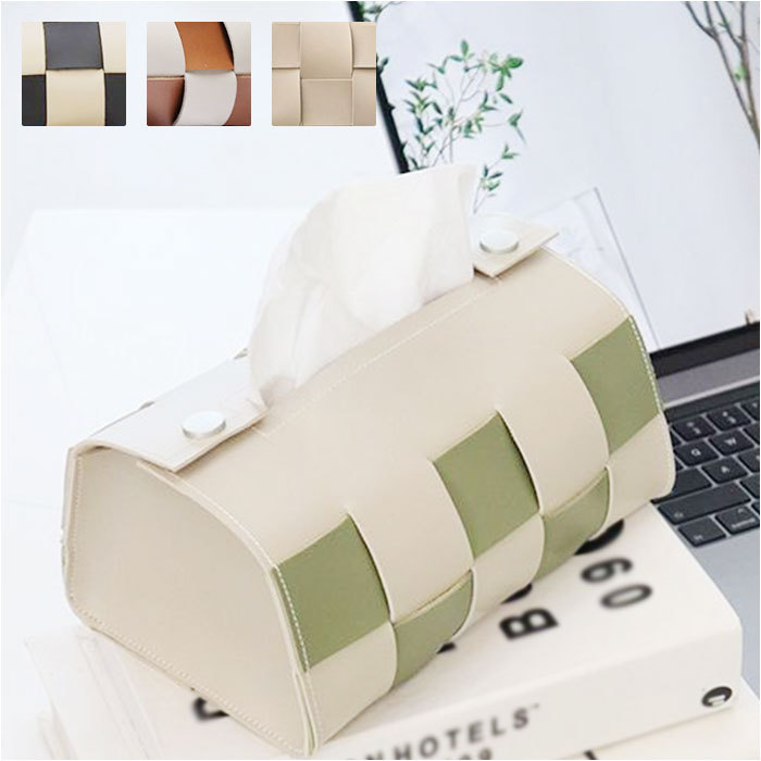 수제 짠 격자 무늬 가죽 티슈 박스 라이트 럭셔리 하이 엔드 센스 티슈 서랍 가정용 식탁 냅킨 보관 상자스토어 가기