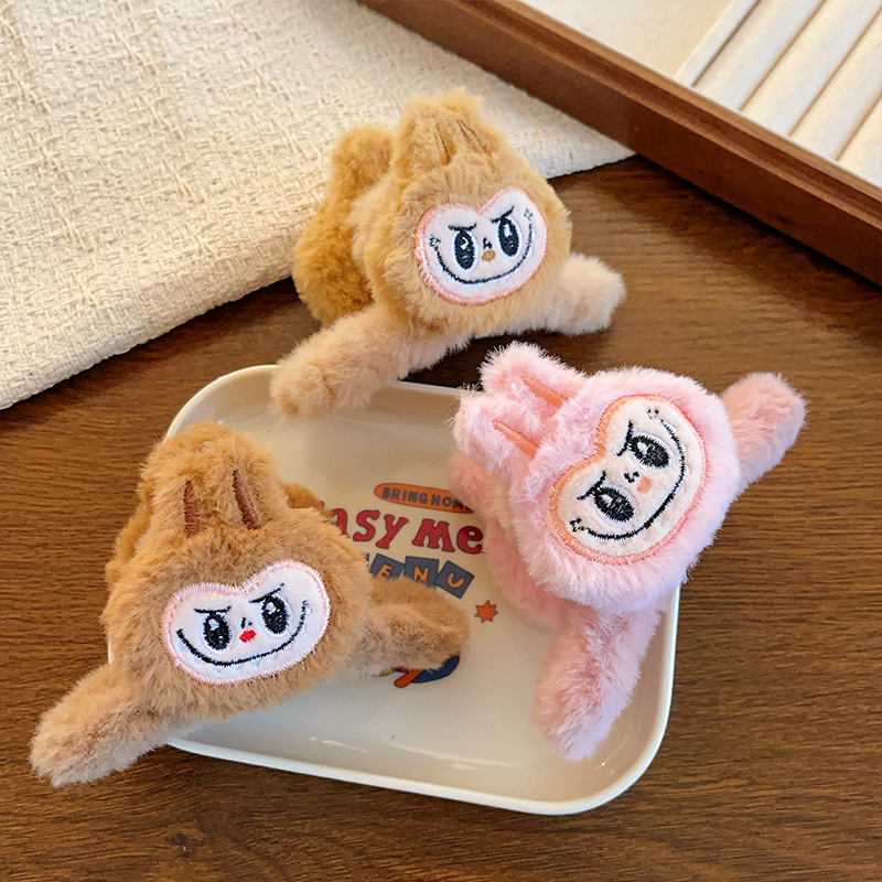 Labubu 라부부 플러시 머리 장식 헤어 액세서리 버블 매트 클립 귀여운 인형 상어 클립 헤어 클립 여성용