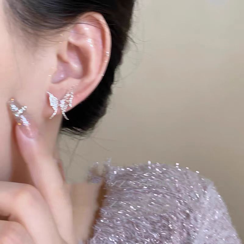 달콤한 핑크 지르콘 나비 중공 귀걸이 여성의 작은 신선한 디자인 감각 귀걸이 새로운 패션 높은 감각 귀걸이스토어 가기