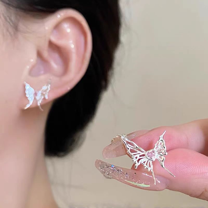 달콤한 핑크 지르콘 나비 중공 귀걸이 여성의 작은 신선한 디자인 감각 귀걸이 새로운 패션 높은 감각 귀걸이