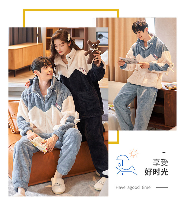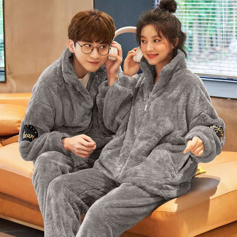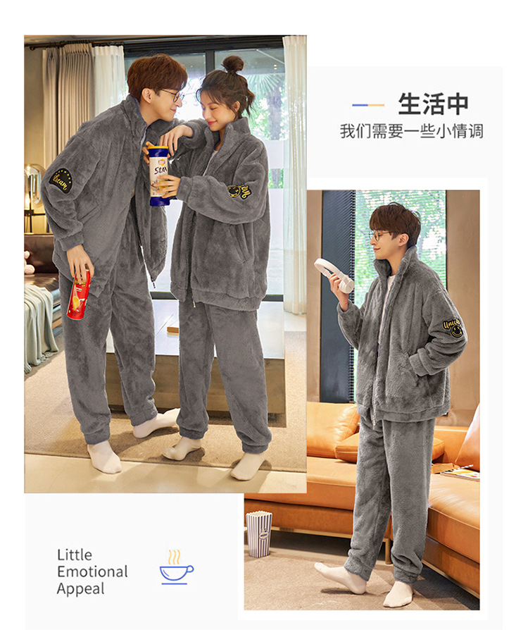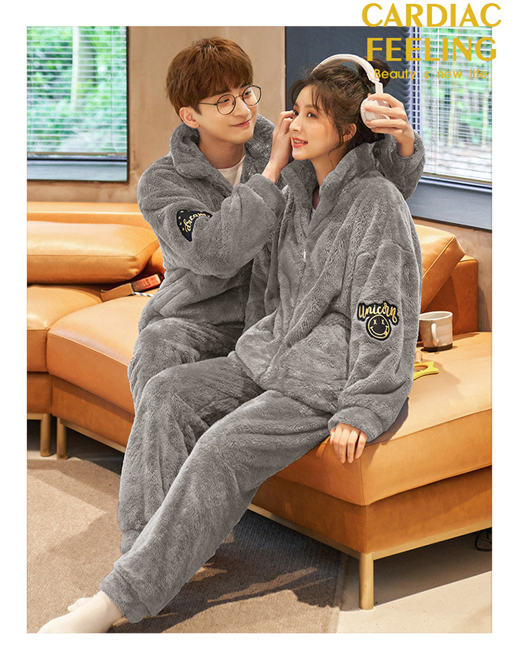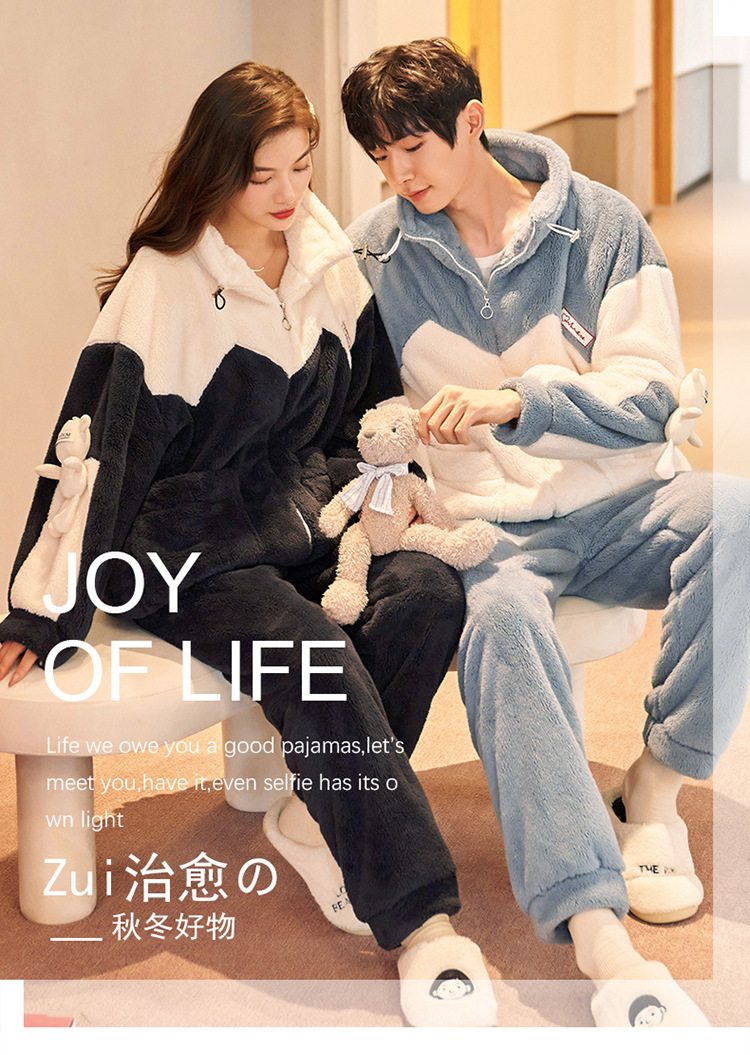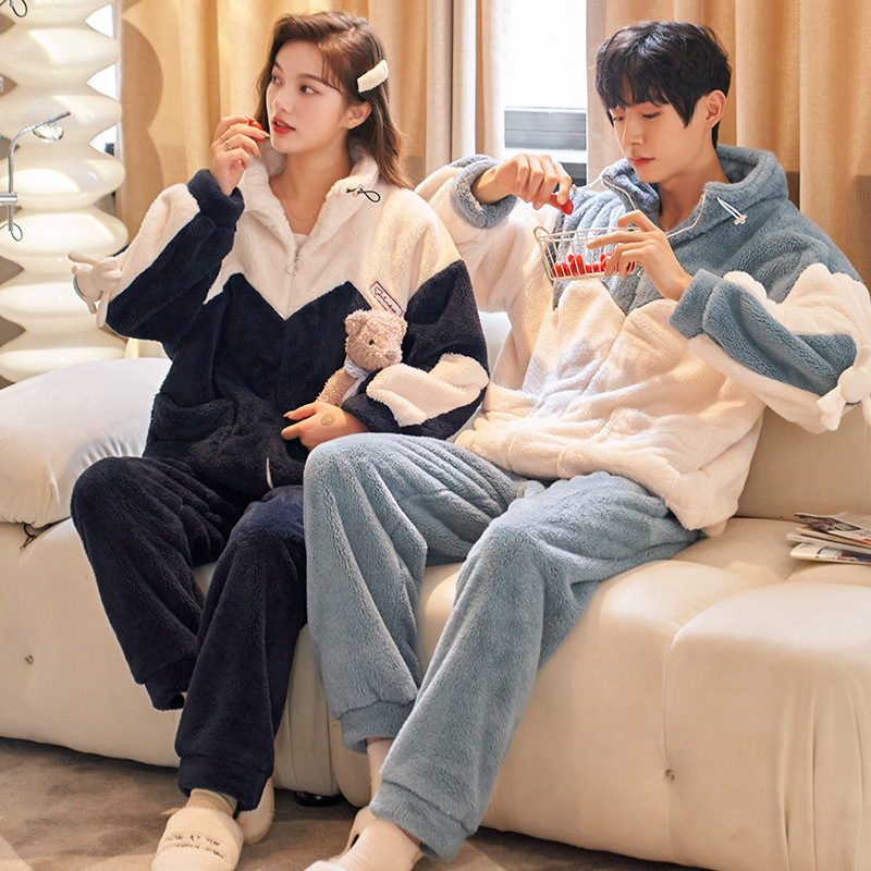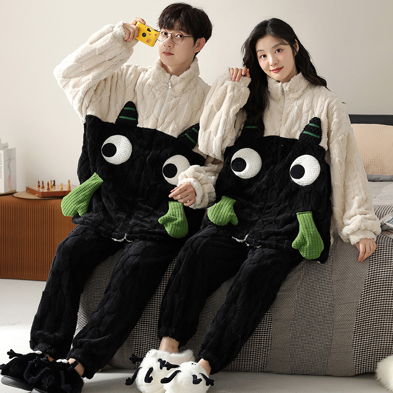 커플 잠옷 겨울 산호 양털 두꺼운 만화 따뜻한 기모 청소년 남성 홈 옷 여성 플란넬 겨울스토어 가기